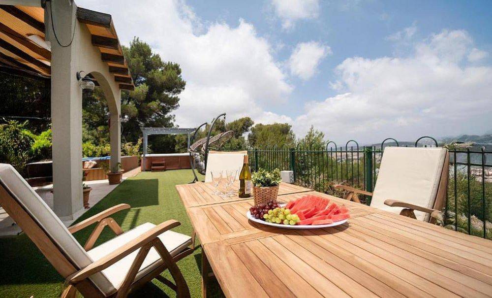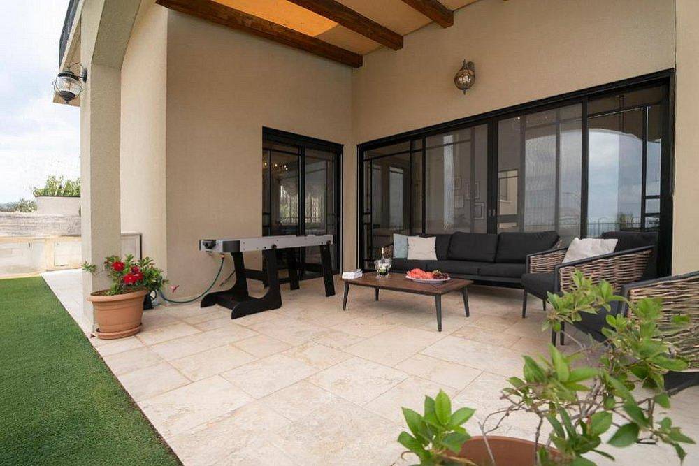 חצר מרווחת עם פינות ישיבה ונוף עוצר נשימה
