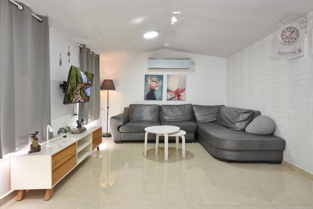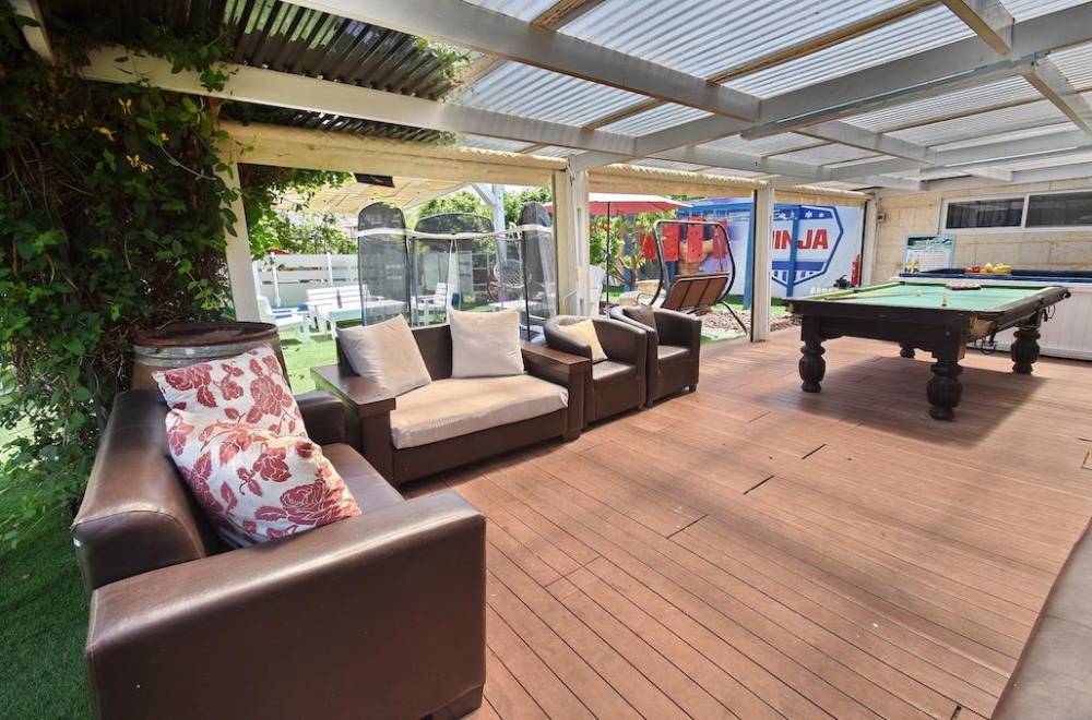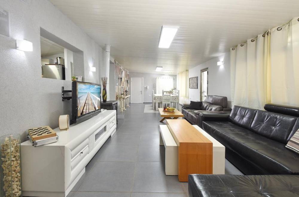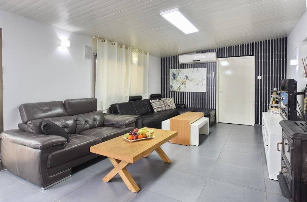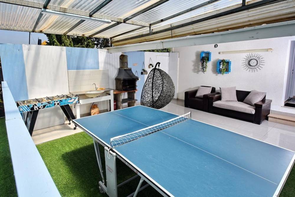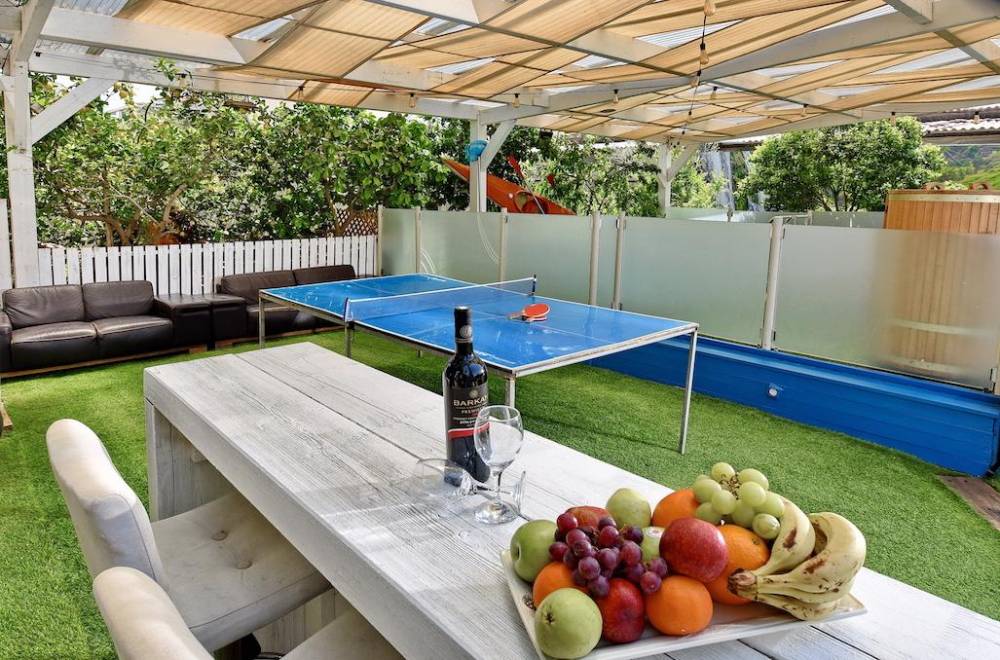 מהסלון קיימת יציאה למרפסת דק 45 מטר הכוללת פינת ישיבה ושולחן פינג פונג