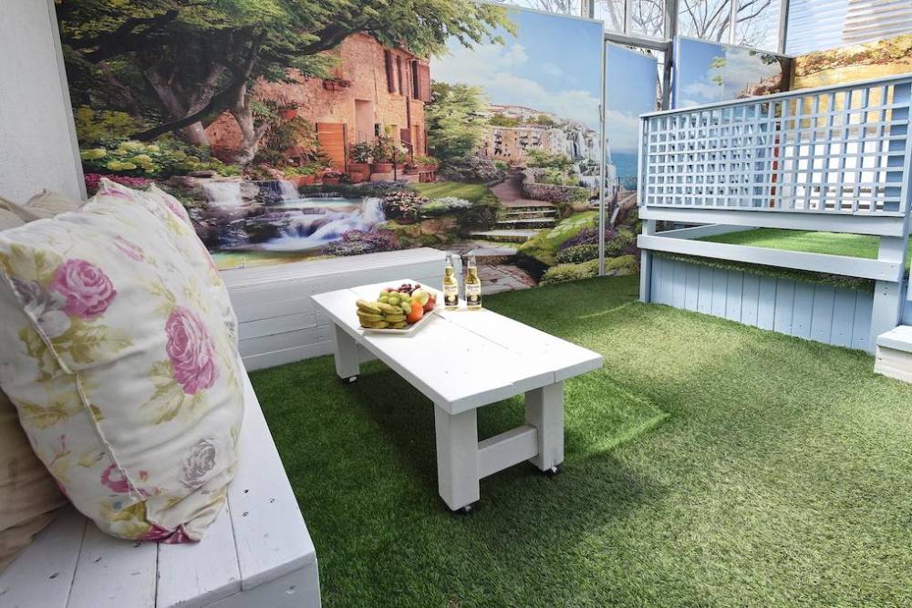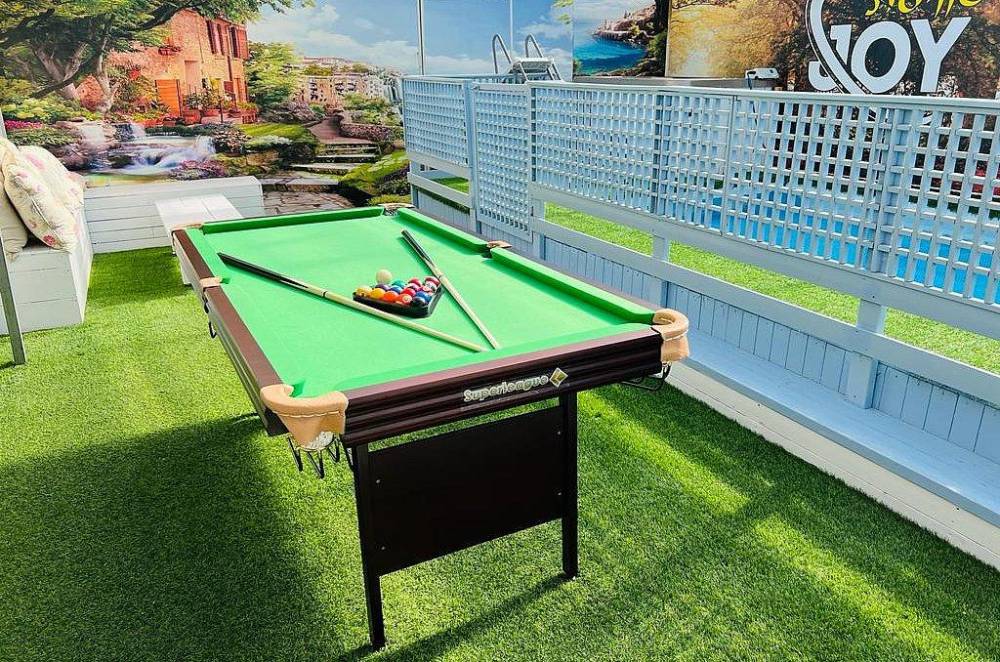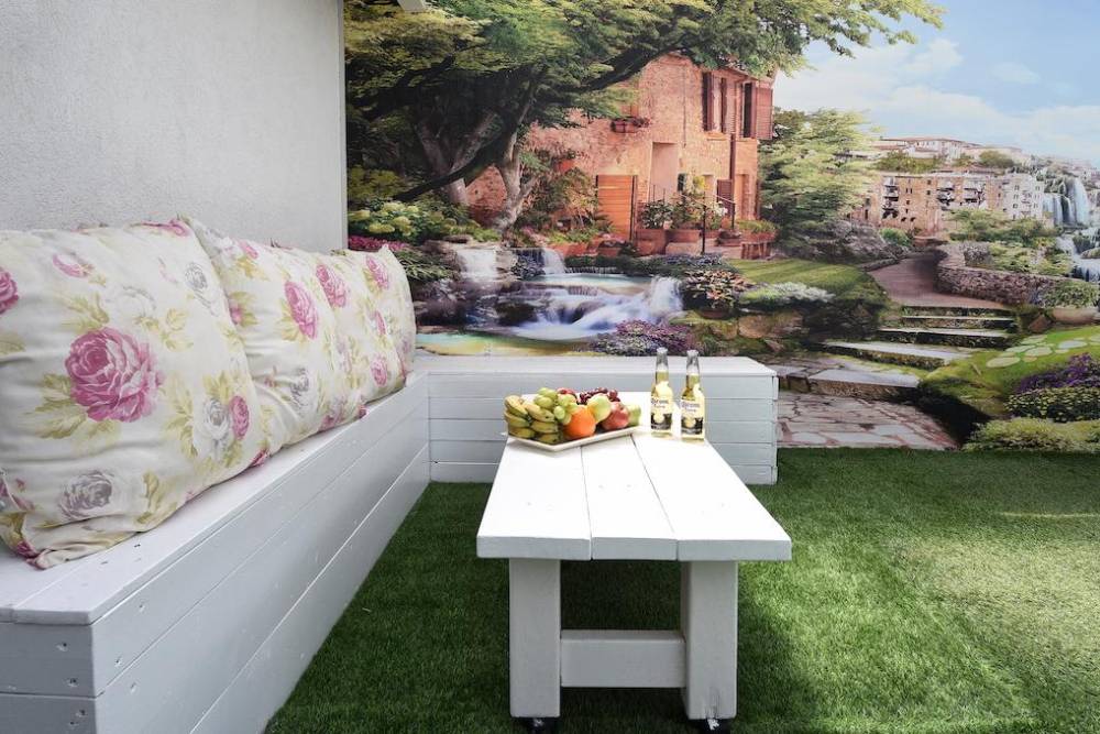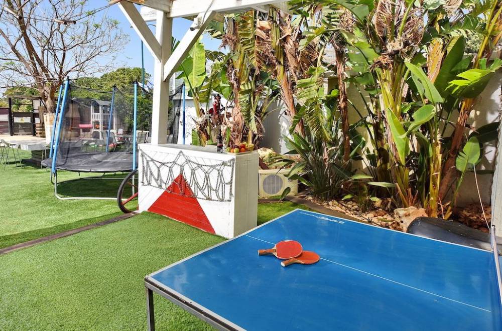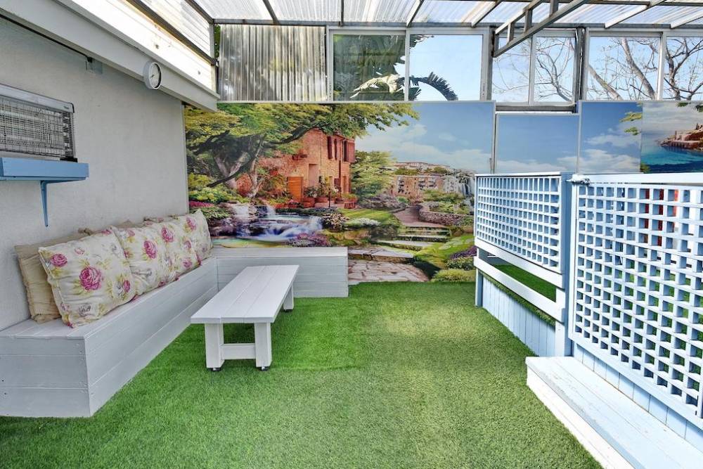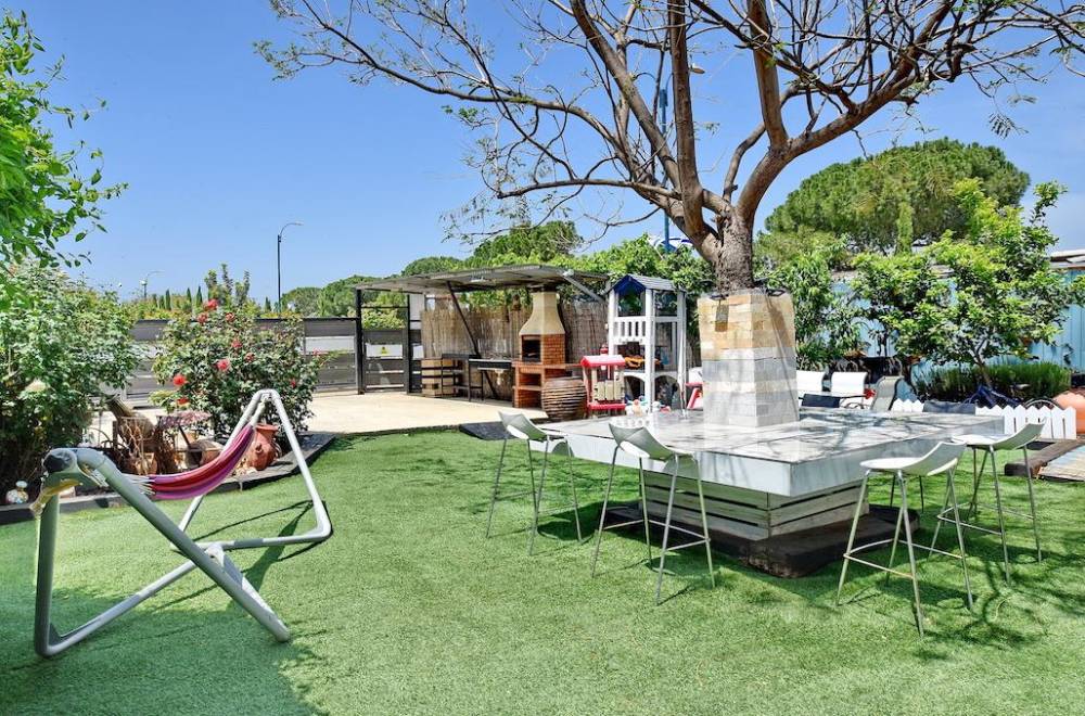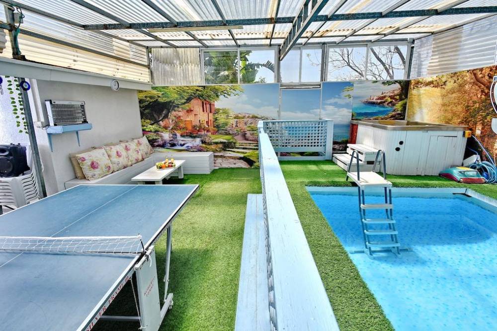 מהסלון קיימת יציאה למרפסת דק 45 מטר הכוללת פינת ישיבה ושולחן פינג פונג