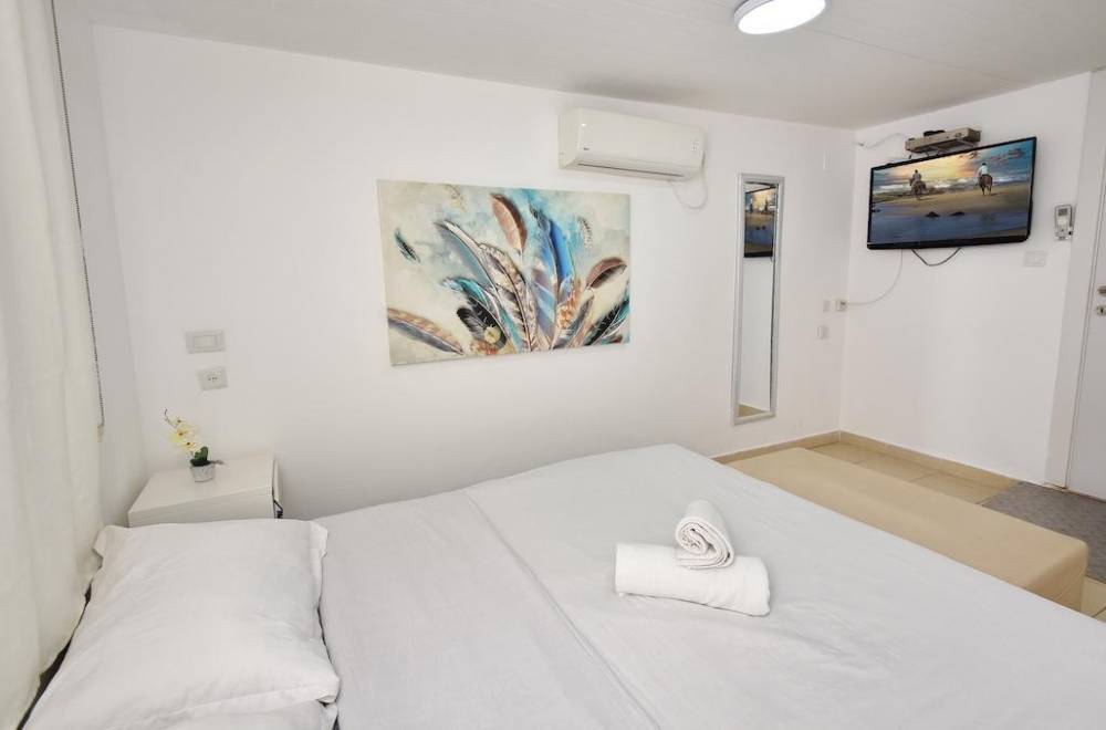 3 חדרי שינה המאובזרים במיטה זוגית מוצעת, מיזוג אוויר, שידות, מסך LCD