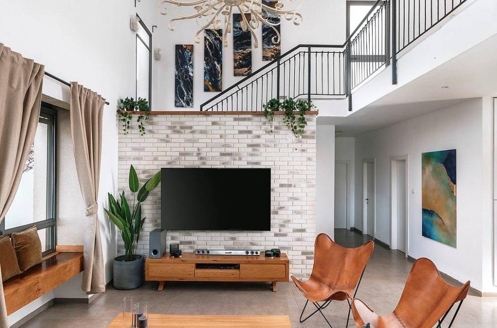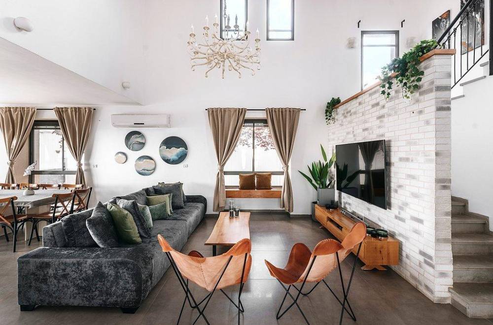 סלון מרווח הכולל כורסאות + מסך ענק 75 אינץ' עם חיבור ללווין