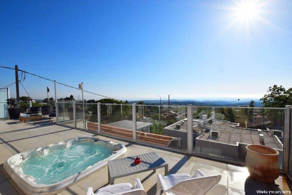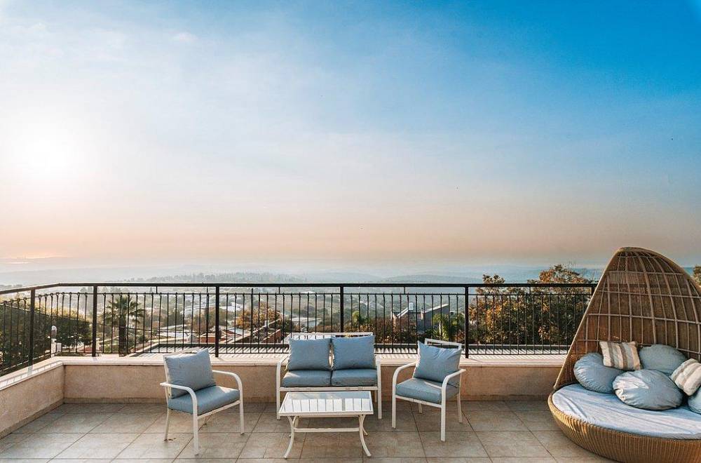 קיימת מרפסת בקומה העליונה עם פינת ישיבה ונוף מדהים