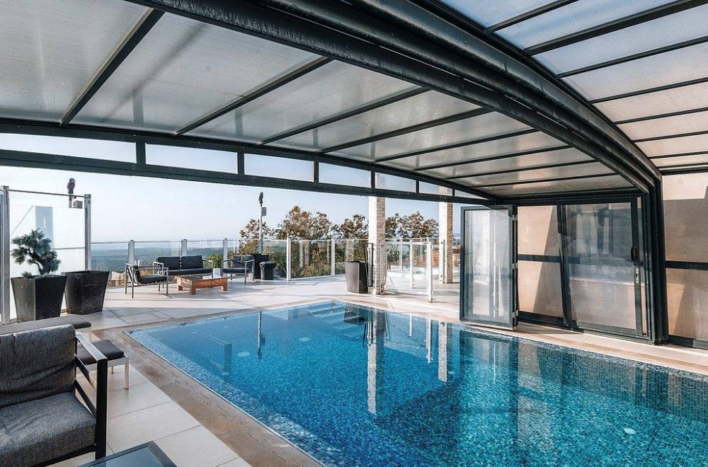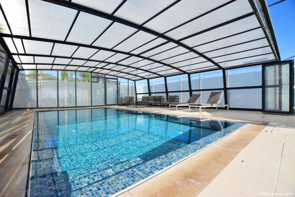 בריכת שחייה גדולה, מחוממת ומקורה, הבריכה בטיחותית, גודל הבריכה מידות: 10×5 מטר, עומק מקסימלי: 1.4 מטר