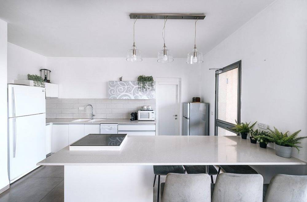 מטבח מאובזר המכיל: מיקרוגל, 3 מקררים (אחד גדול ו-2 בינוניים), תנור, כיריים חשמליות, מתקן לשתייה, כלי אוכל והגשה, מדיח כלים, מכונת קפה