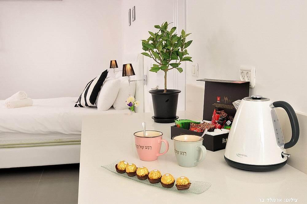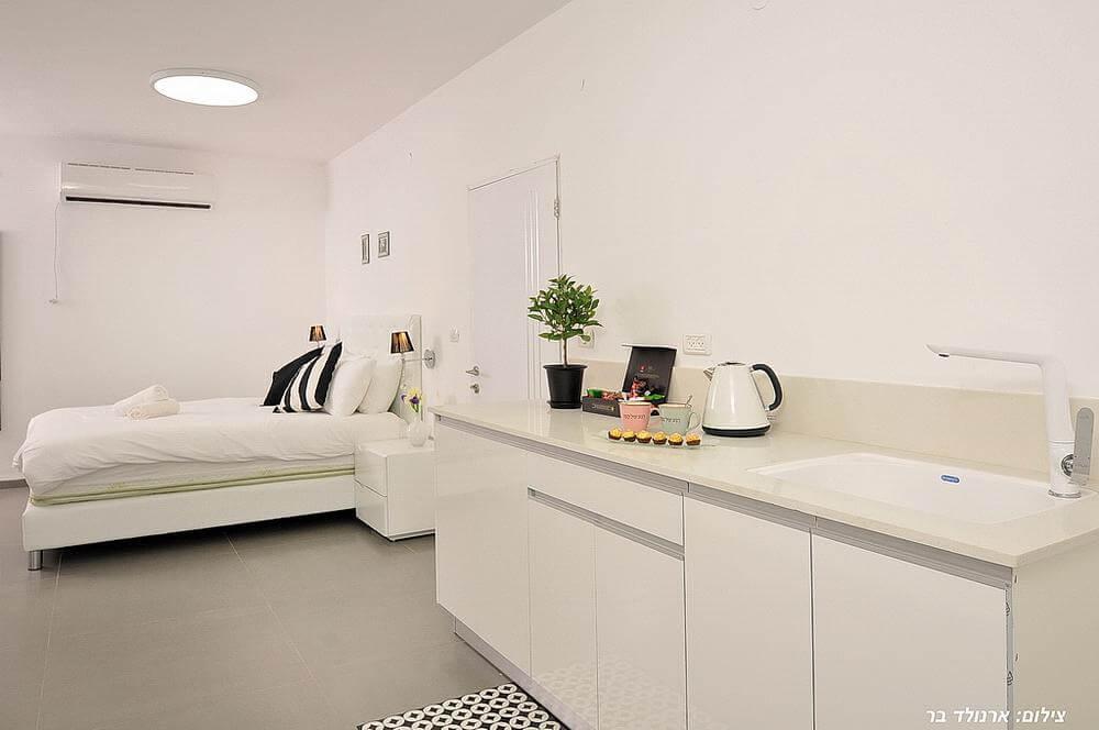 2 סוויטות פרטיות וגדולות עם חדר שינה מעוצב הכולל: מיטה מוצעת עם מזרן אורתופדי, שידה, מסך lcd, חדר רחצה ומטבחון פרטי הכולל: מיקרוגל, מקרר, קומקום חשמלי וכלי אוכל והגשה