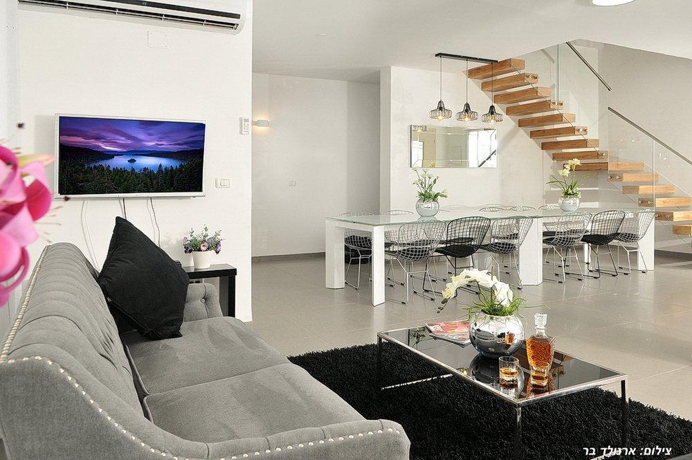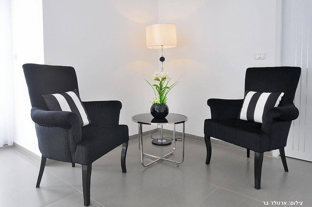 2 סלונים מפוארים אל מול מסך lcd עם חיבור ללווין