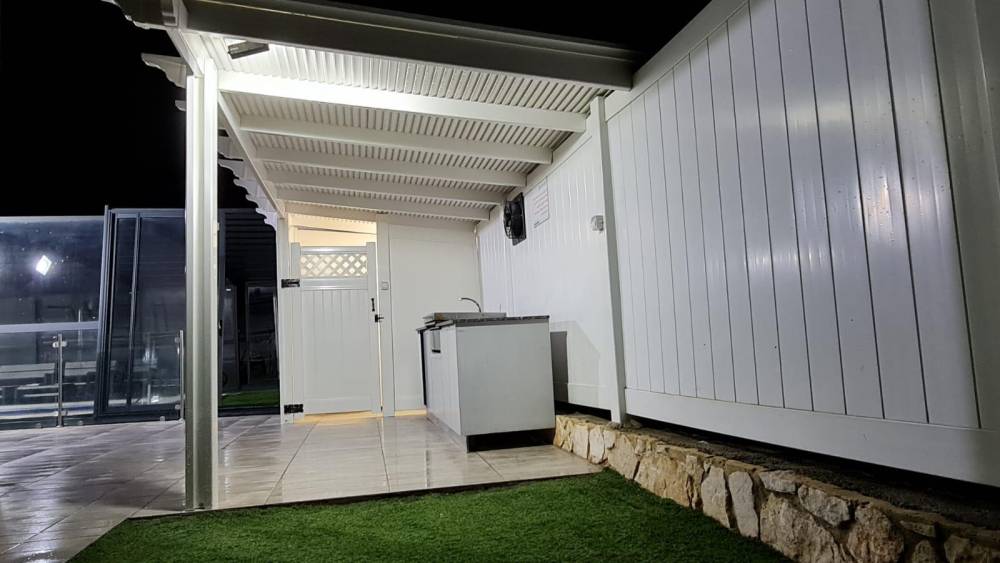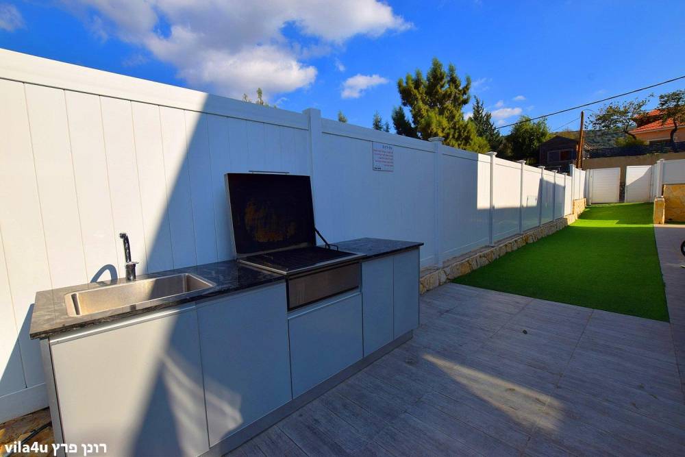 פינת המנגל הינה מטבח בנוי מאלומיניום מבית aluminew עם מנגל מובנה ,כיור ומשטח שיש. חצר הגינה הכולל כדונם ללא שטח הבית עצמו הבנוי כ 500 מטר רבוע. בגינה תמצאו נדנדות ,פינות ישיבה, שולחן פינג פונג שולחן אוכל המתאים לכ 30 סועדים.