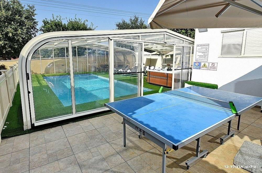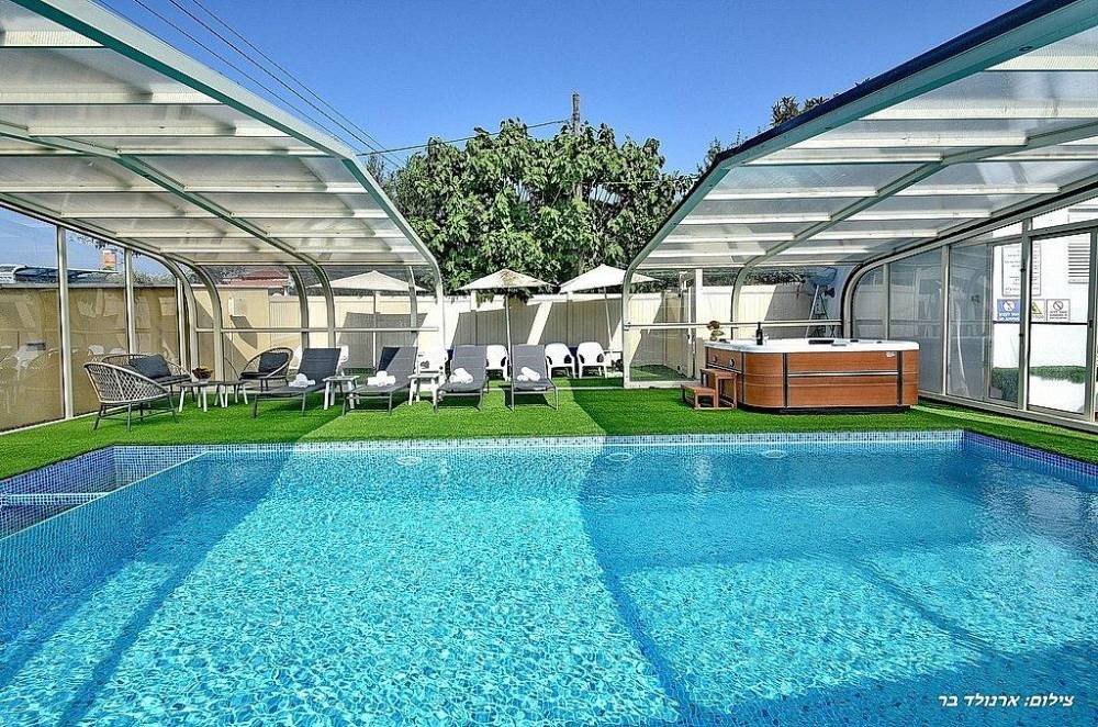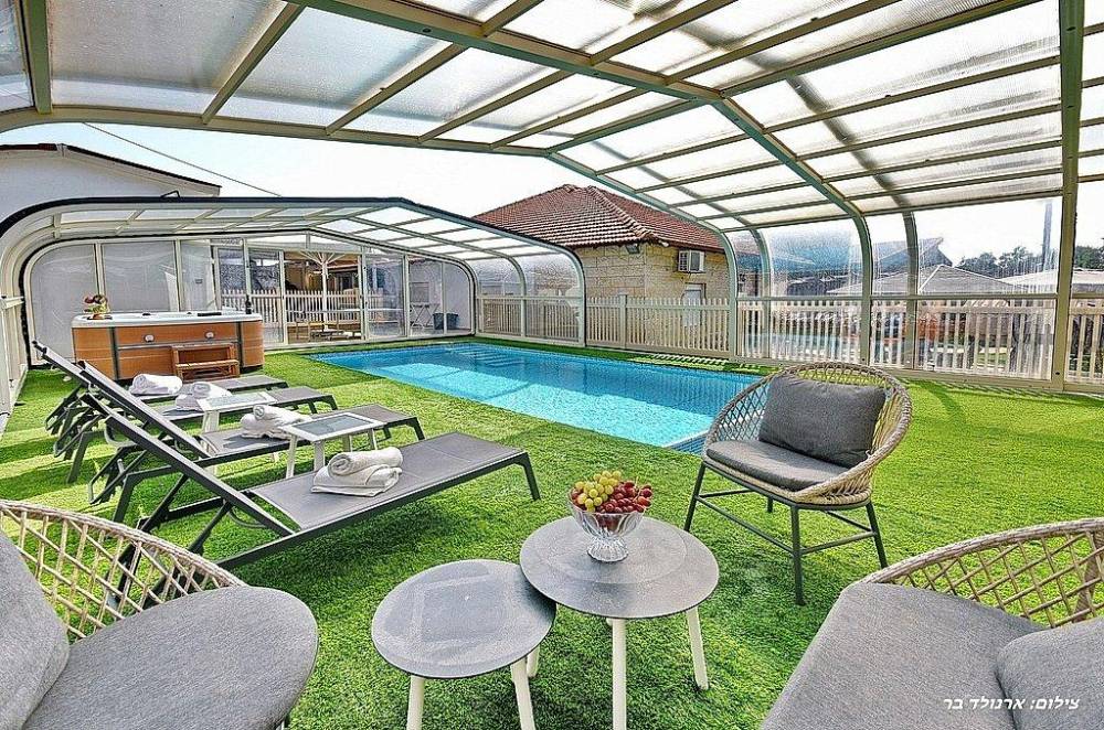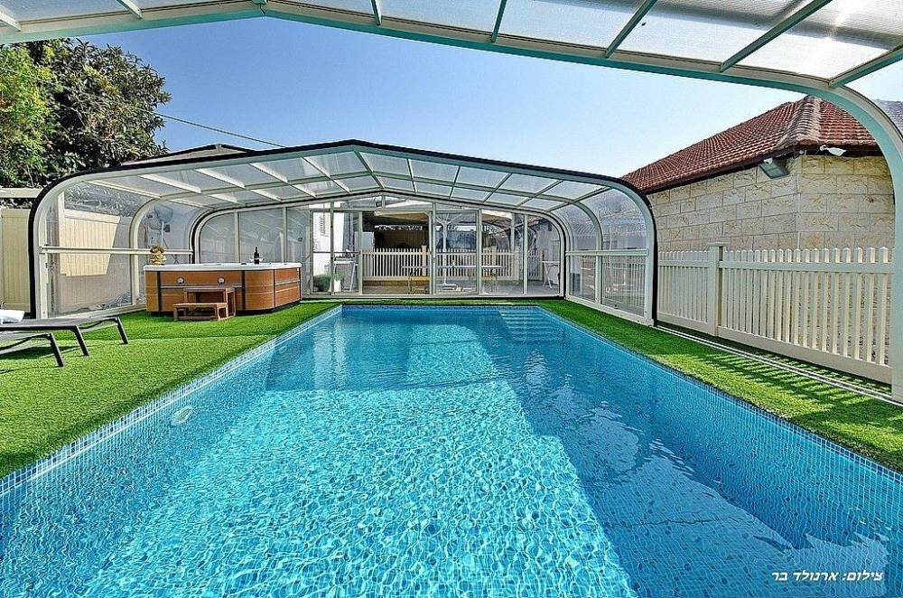 בריכת שחייה גדולה בגודל 8.5X4 מטר מחוממת מקורה