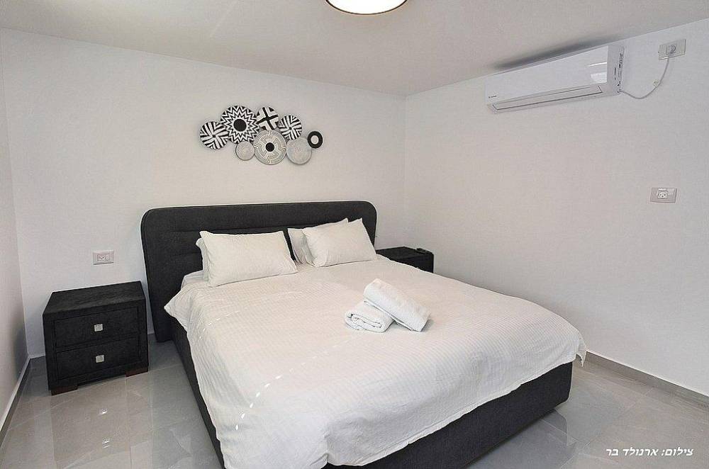 5 חדרי שינה מאובזרים הכוללים: מיטה זוגית, טלוויזיה, מזגן, כורסא מפנקת, ארון ושידות לאחסון