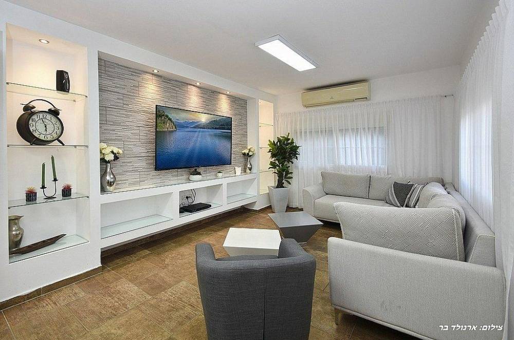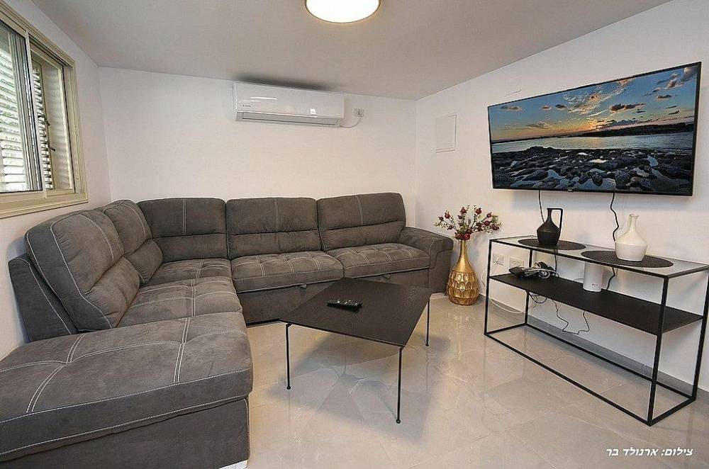 סלון גדול ומעוצב עם מסך טלוויזיה עם חיבור לYES