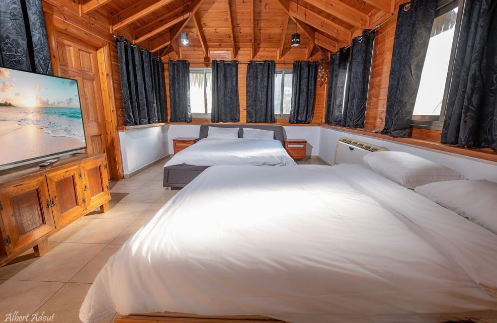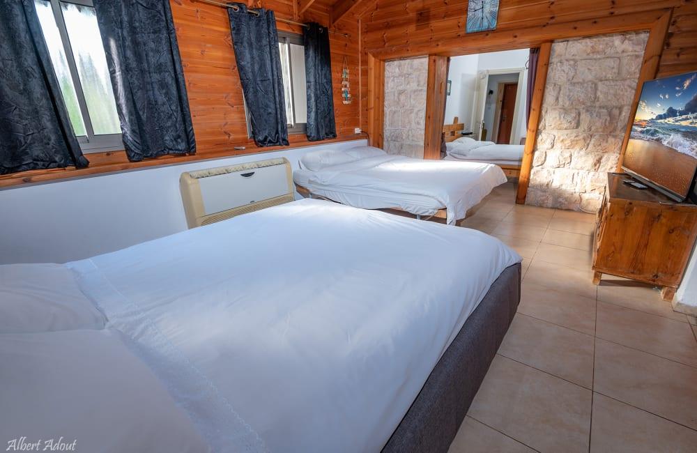 חדר אחד מכיל בתוכו 3 מיטות זוגיות