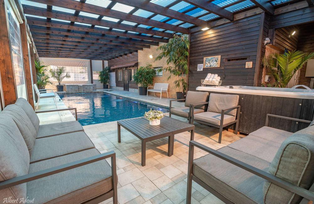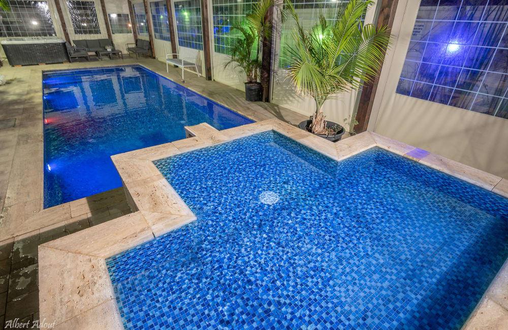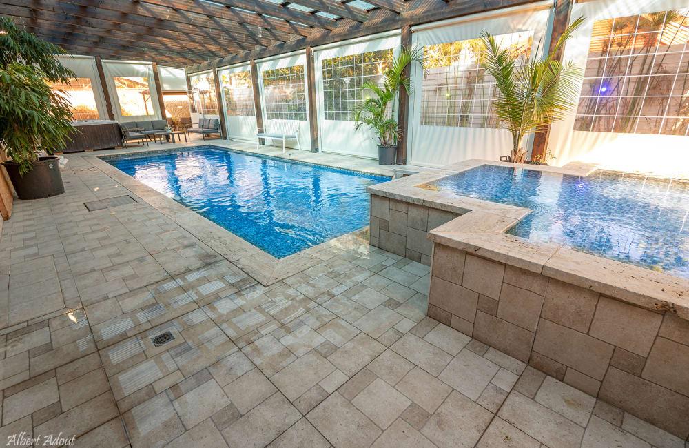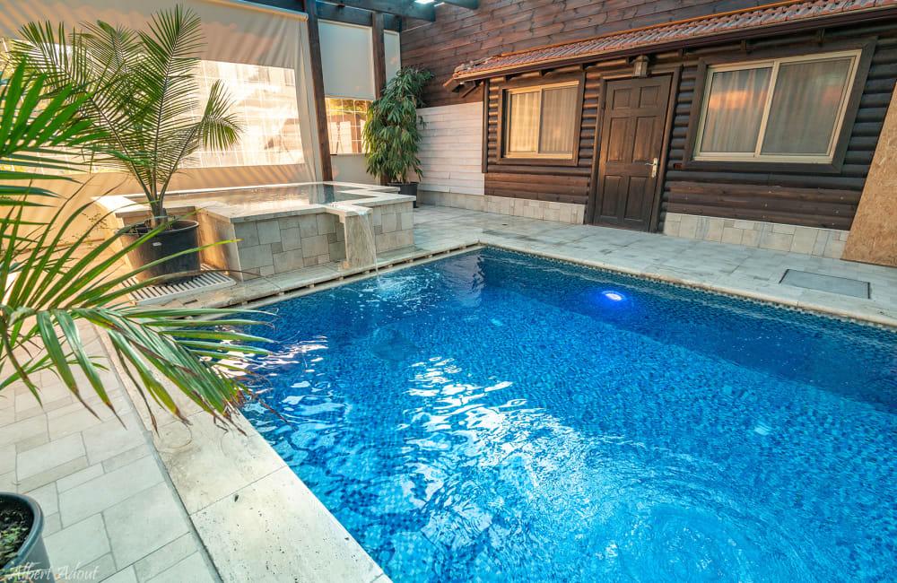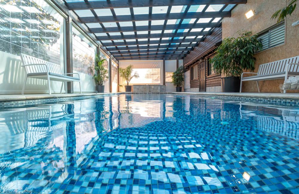 בריכת שחייה פרטית מגודרת (בחורף מחוממת ומקורה, עומק עד 1.5 מטר)