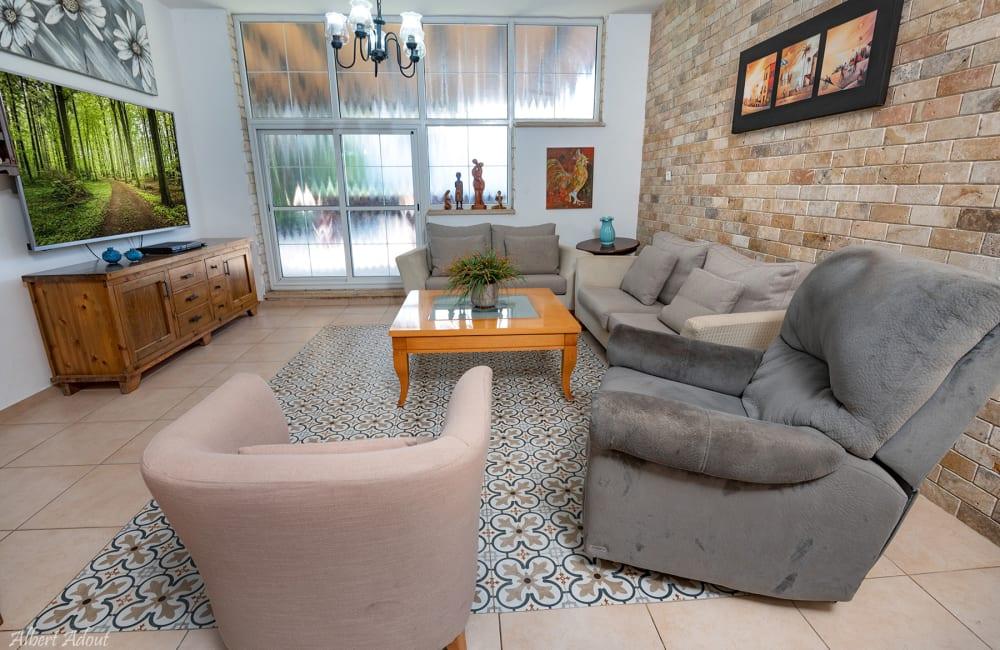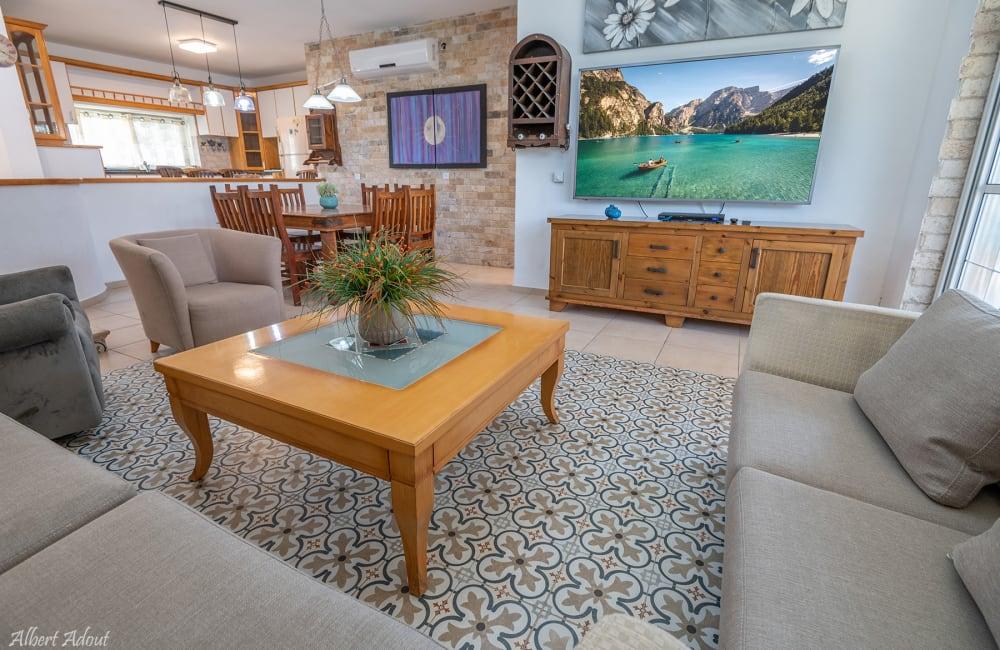 סלון גדול + מסך 75 אינץ' מחובר לערוצי YES