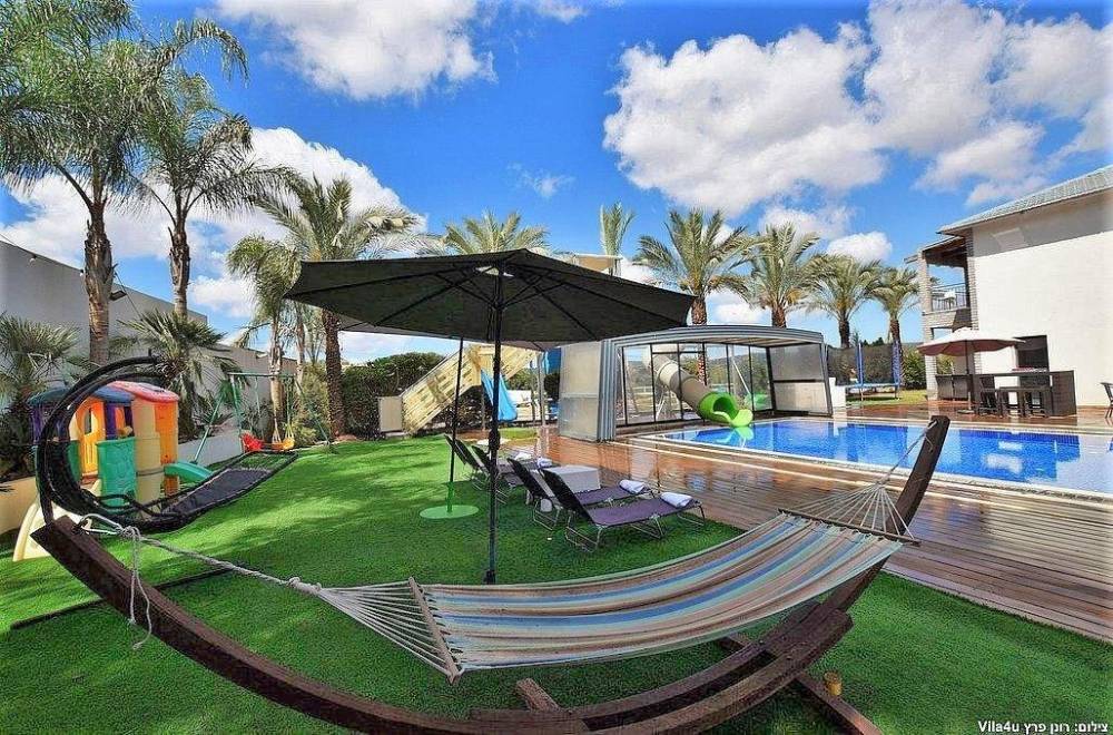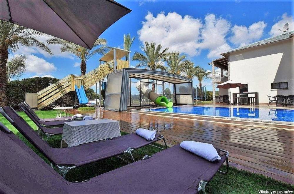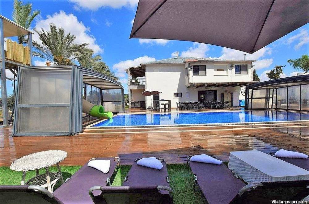 הוילה מעוצבת ובנויה בסטנדרטים גבוהים ובה תוכלו להנות מבריכת שחייה ענקית מחוממת ומקורה (בחודשי החורף) עם מגלשה ענקית וייחודית! בנוסף במתחם ג'קוזי ספא, משחקי שולחן, משחקים לילדים, מגוון פינות ישיבה ועוד..