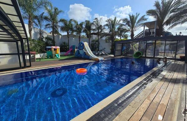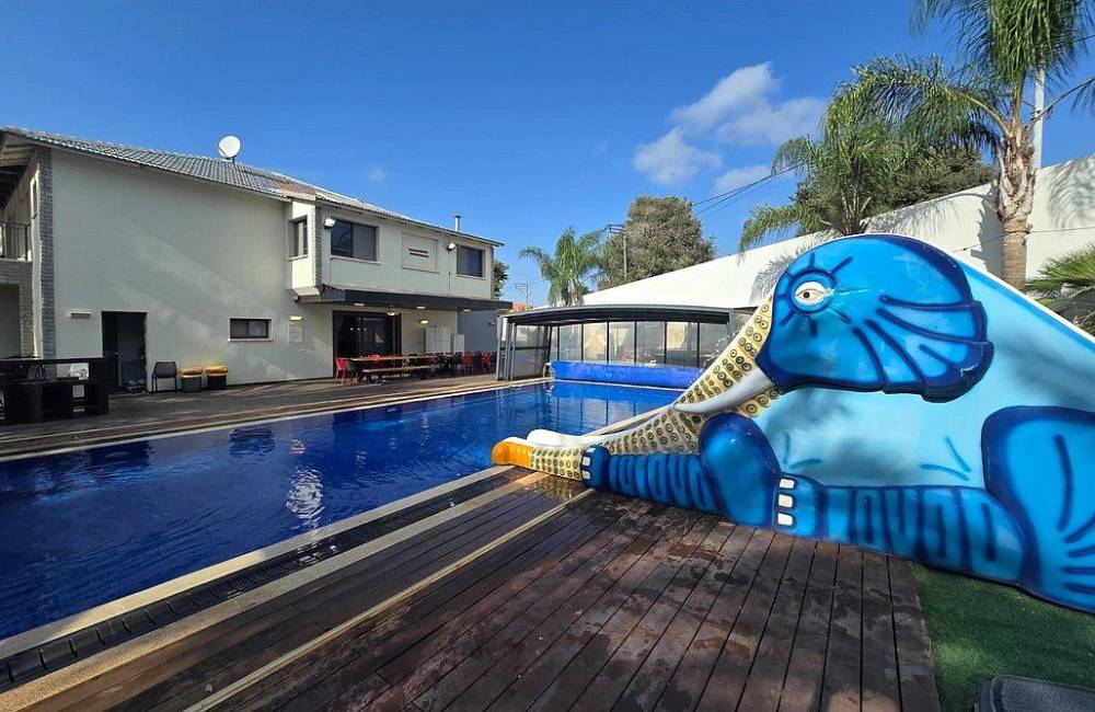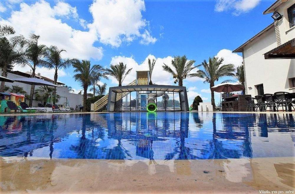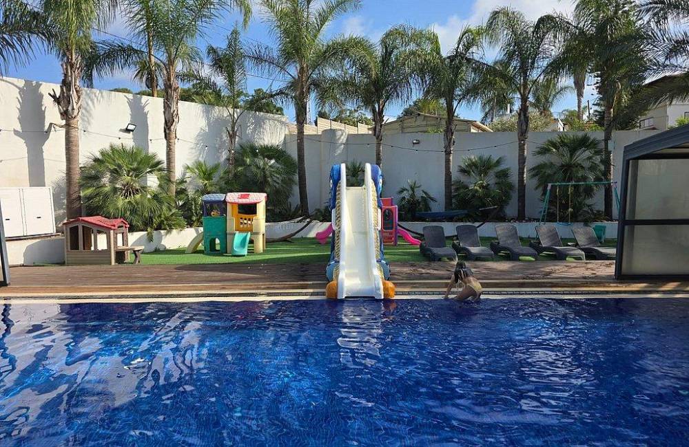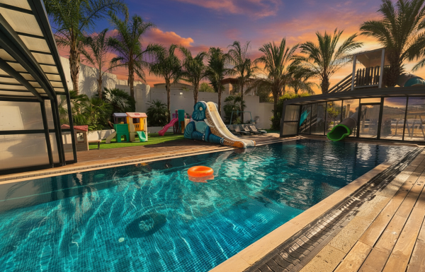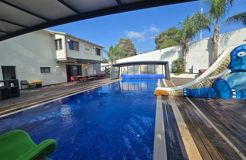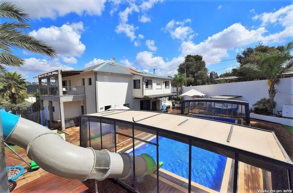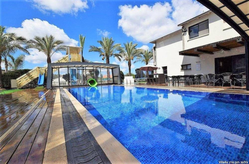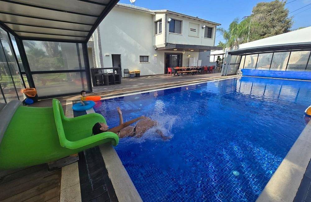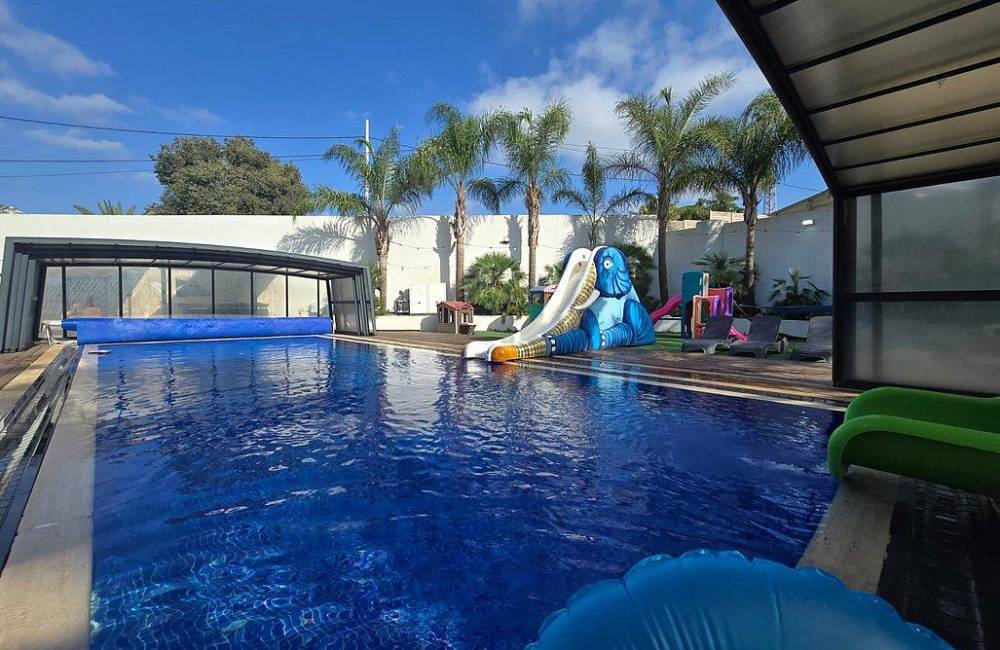 בריכה מחוממת ומקורה עם מגלשה
