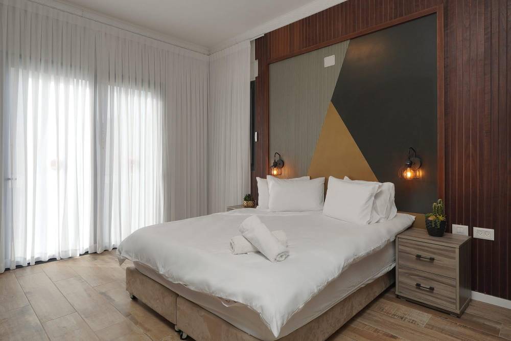 מיטה זוגית, מזגן, טלוויזיה, שידות אחסון, ארון בגדים, חדר רחצה פרטי