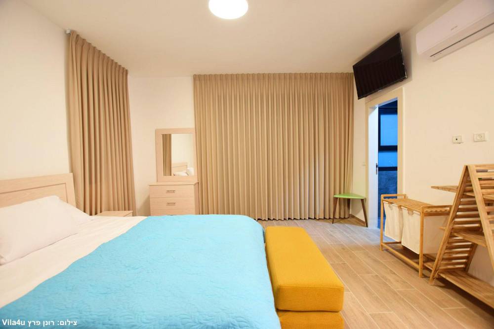 - 3 חדרי שינה עם מיטה זוגית, מסך טלוויזיה, שידות, מיזוג אוויר
