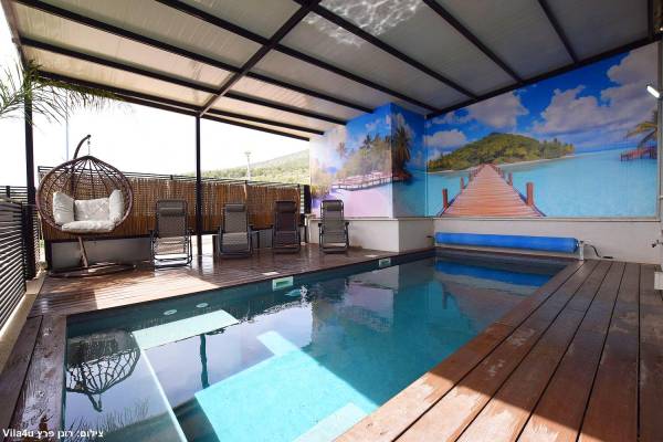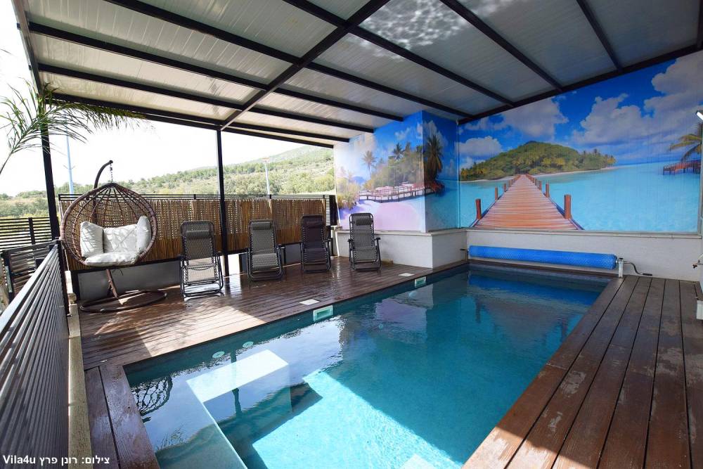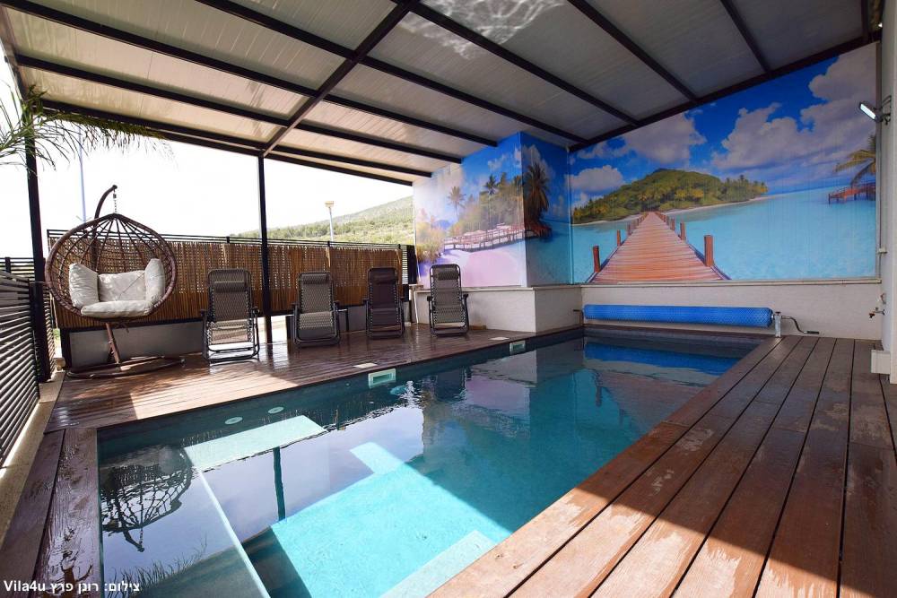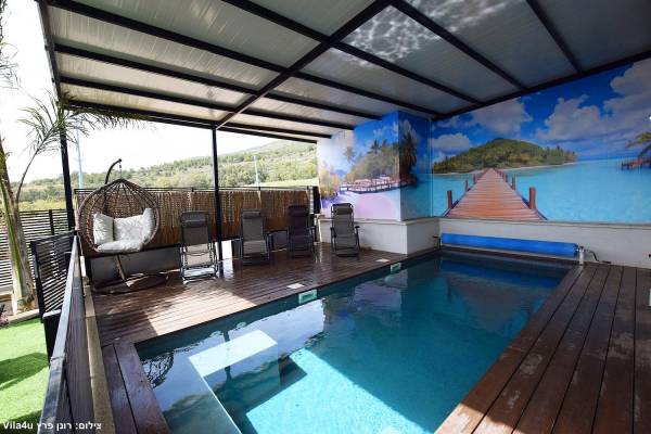 הוילה כוללת בריכה פרטית מחוממת ומקורה, משחקי שולחן, ומרפסת עם נוף עוצר נשימה.