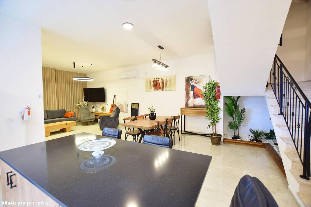 - מטבח מאובזר: כיור כפול, בר מים, מיקרוגל, מקרר, כיריים, מדיח כלים, מכונת קפה, כלי אוכל והגשה, פלטה ומחממים לשבת