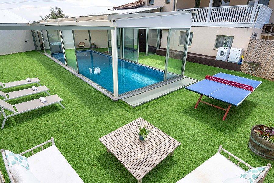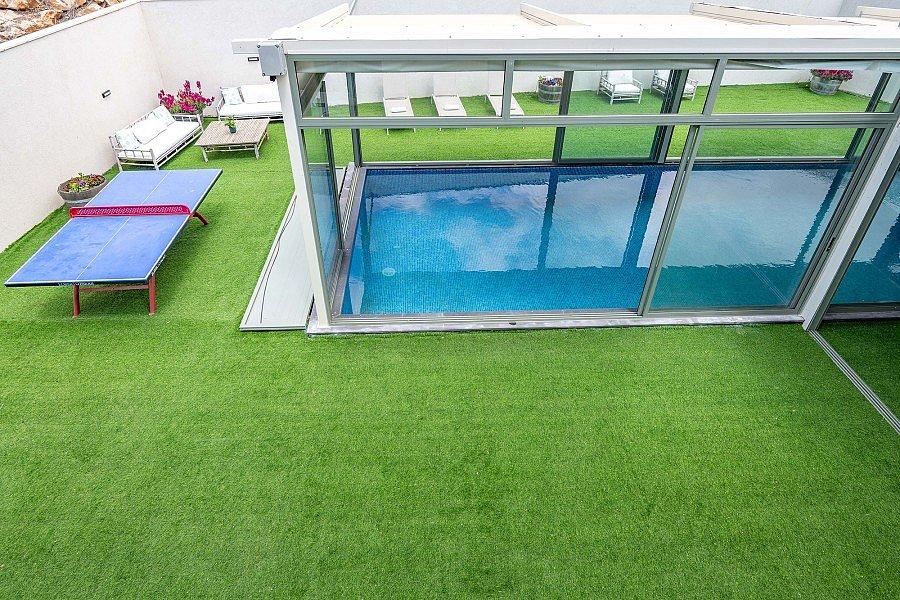 קיימת יציאה למרפסת עם שולחן סנוקר ופינת אוכל