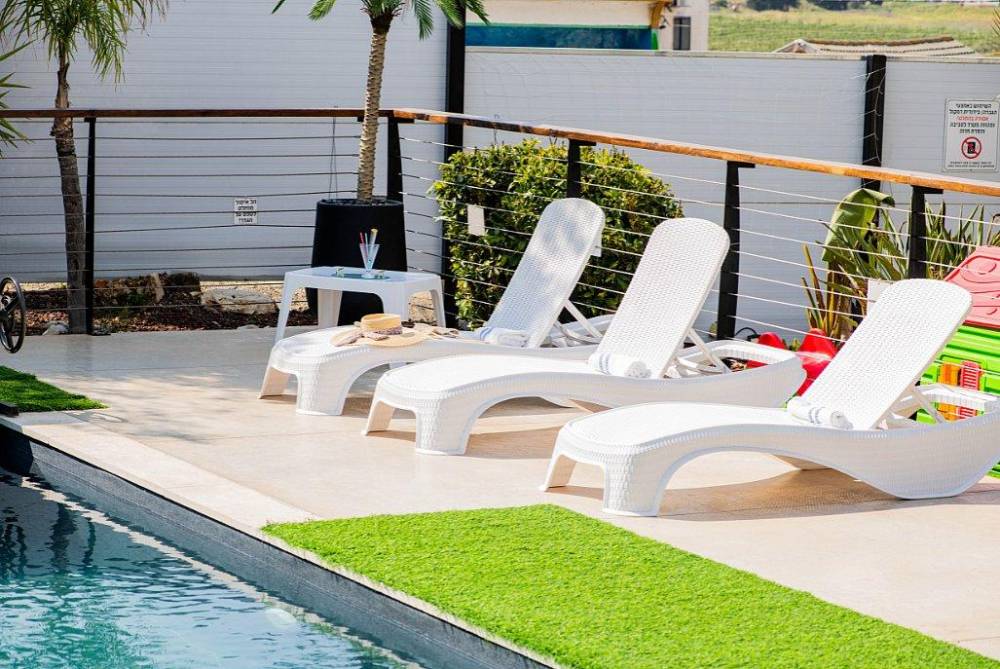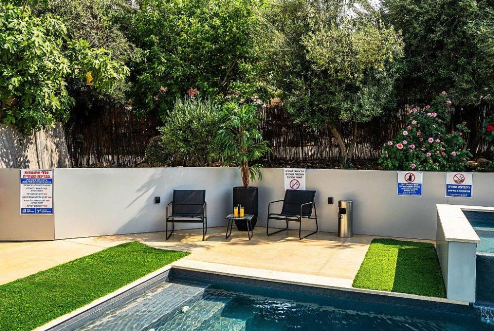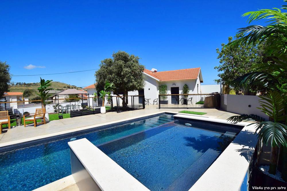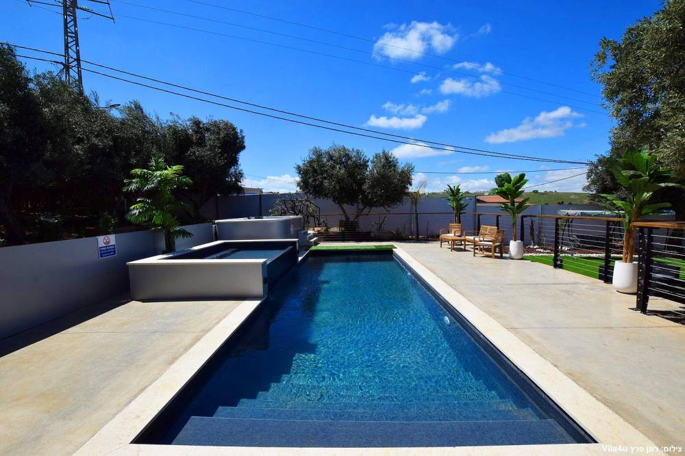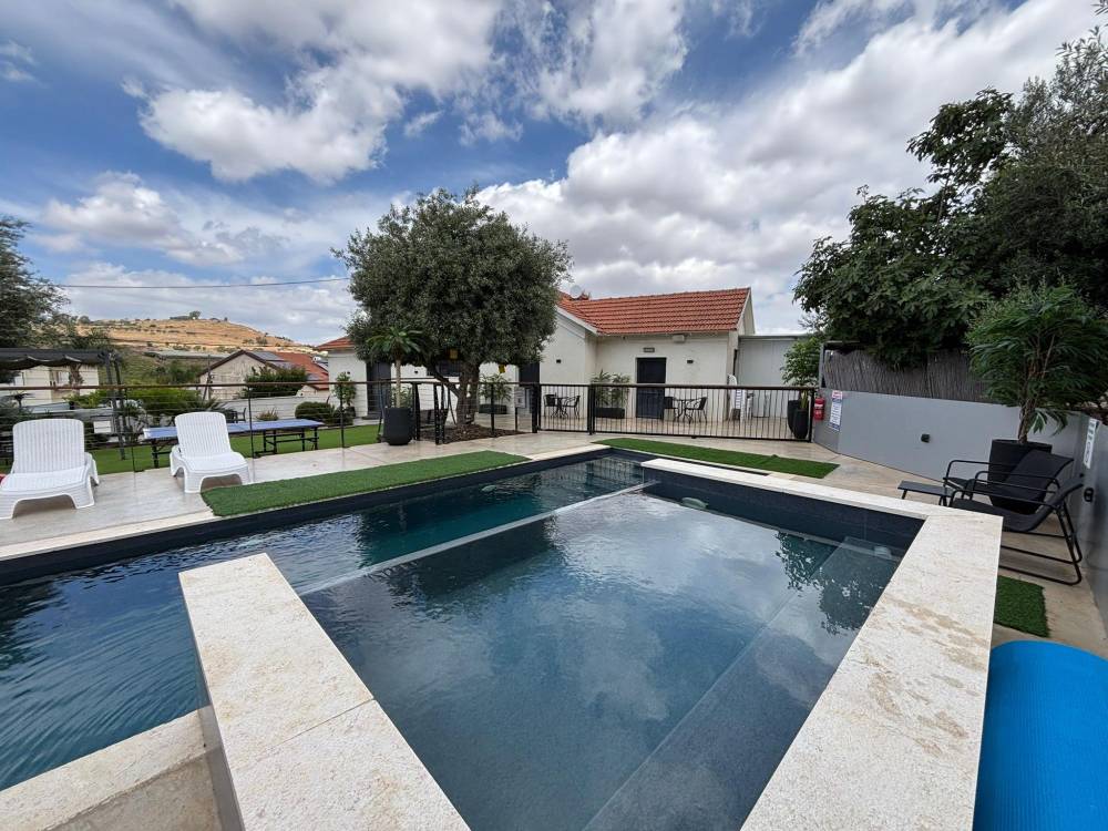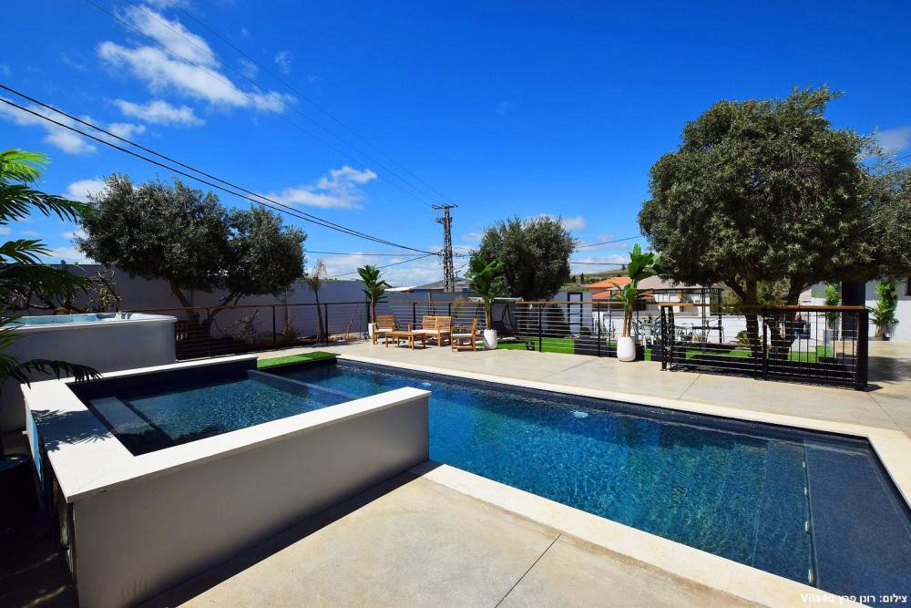 במתחם תוכלו להנות ממתחם חיצוני מטופח עם מדשאות, פינות ישיבה, מטבח חוץ, עמדת מנגל מקצועית, בריכת זרמים מגודרת ומחוממת ואף ג'קוזי ספא מפנק.