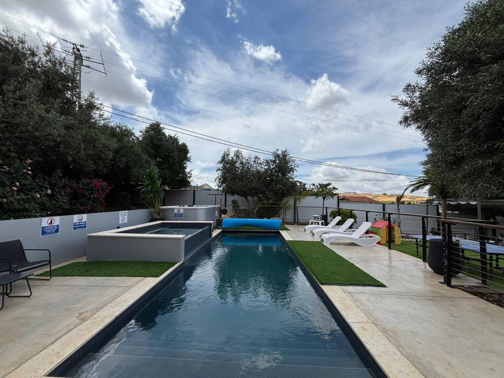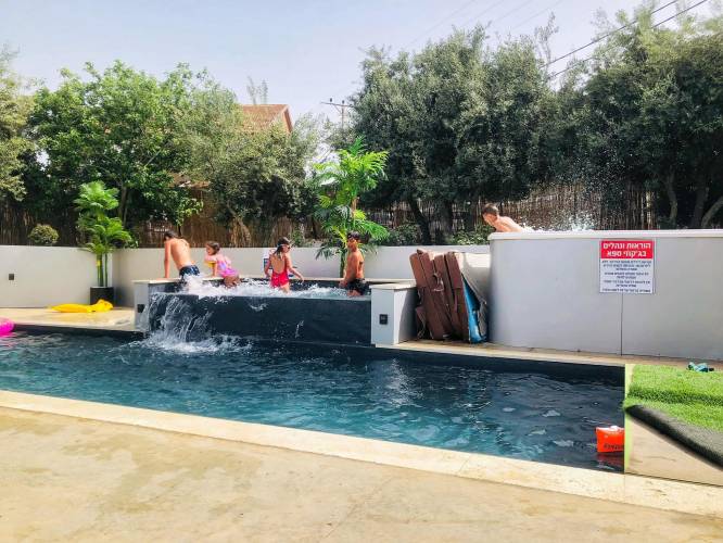 בריכת זרמים מגודרת בגודל 10 על 3 מטר, מחוממת 40 מעלות