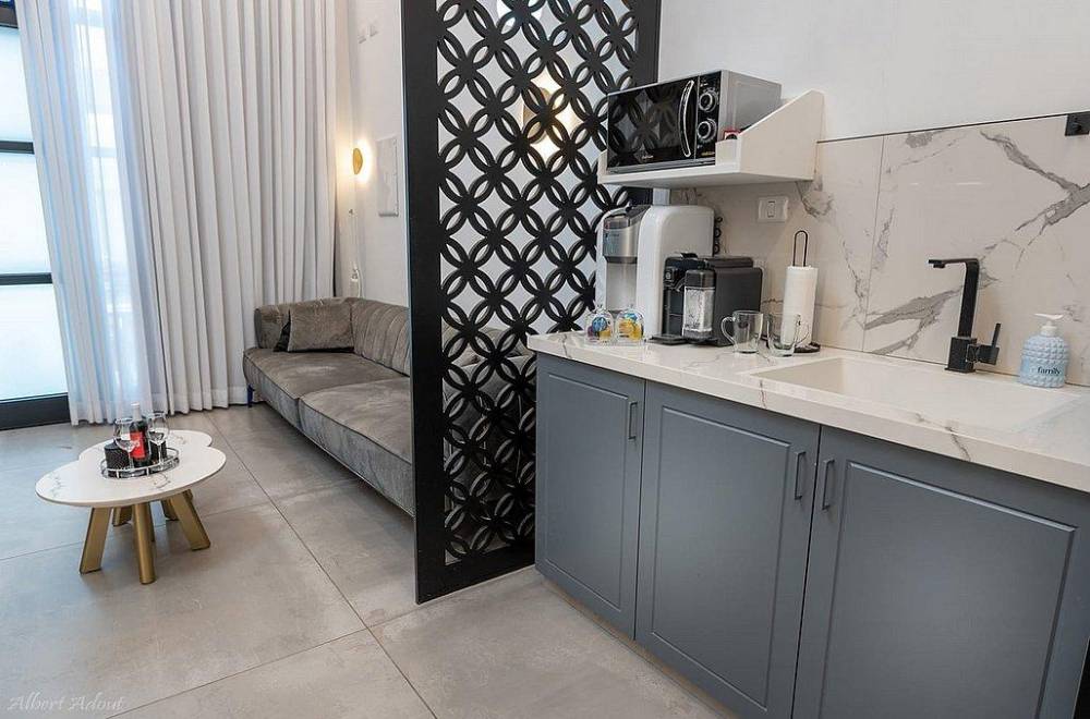 מטבחון מאובזר עם מקרר ובר מים