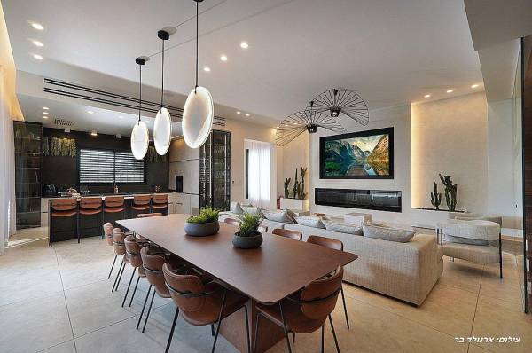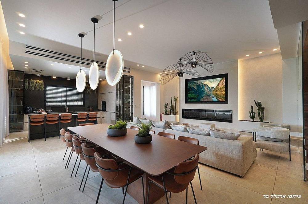 סלון מרווח עם מסך 100 אינץ