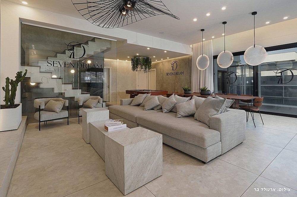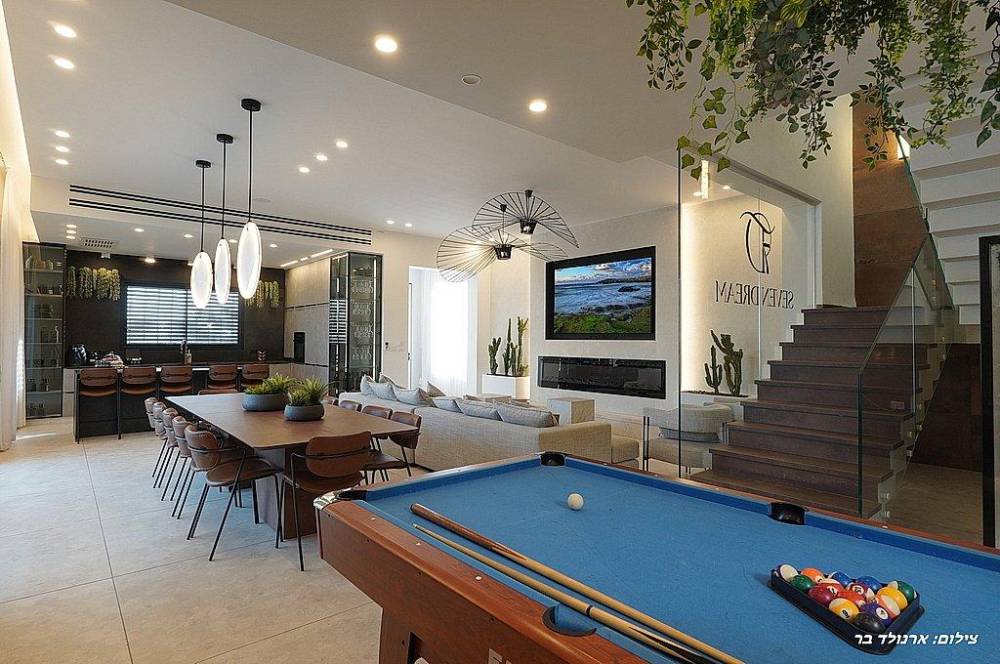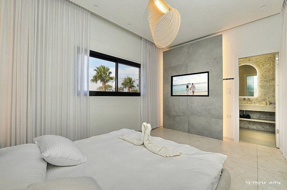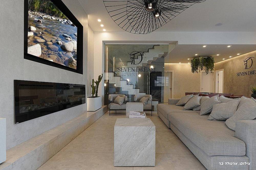 עם הכניסה לוילה תתקבלו בסלון מרווח שמתהדר בטלוויזיה בגודל 100 אינץ' המחוברת לערוצי yes.