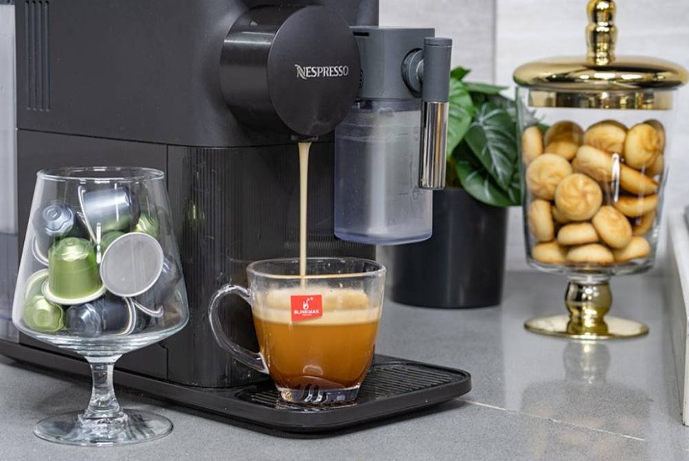מטבח מאובזר ובו: תנור, מכונת קפה ומקציף חלב, מקרר, כיריים חשמליות, מיקרוגל, סירים ומחבתות