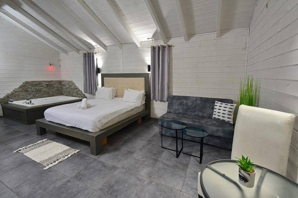 במתחם 4 צימרים מפנקים לזוגות, משפחות וקבוצות עד 23 אורחים, מתחם חיצוני עם בריכת שחייה, ג'קוזי ספא, משחקי שולחן ועוד.