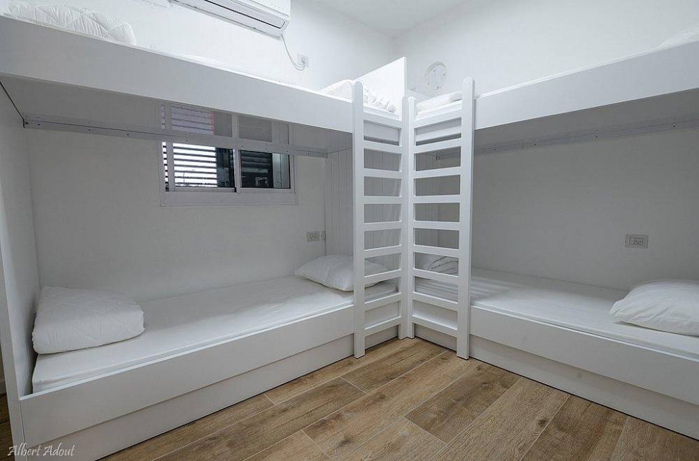 בחדר אחד 3 מיטות קומותיים, מסך צפייה ומיזוג אוור