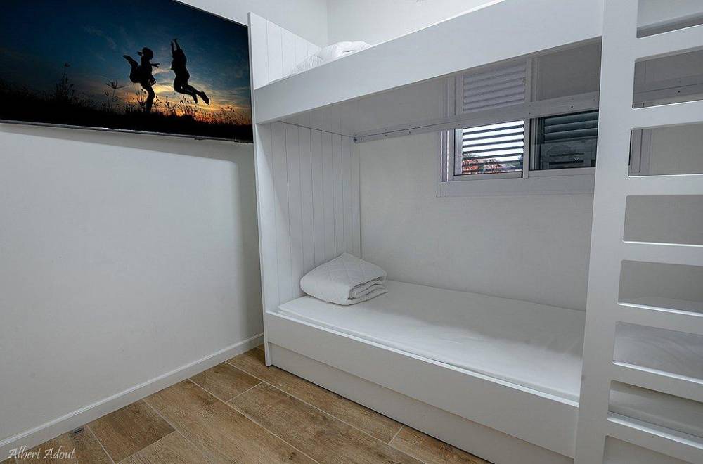 בחדר השני מיטת קומותיים, מיזוג אוויר ומסך צפייה