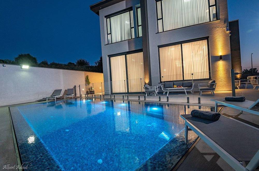 נופש יוקרתי זה כאן! נעים להכיר, אלגליס – וילת יוקרה מהשורה הראשונה, אשר עוצבה עם המון מחשבה איך ליצור מתחם נופש שיספק את הנופשים לאורך כל החופשה. וילה אלגליס מונה כ-8 חדרי שינה מפנקים מתוכם 2 חדרי ילדים, פונה לנוף מדהים מהסלון היוקרתי, מאובזרת במטבח גדול ופינת אוכל לצידו וכמובן בחצר הוילה תוכלו להנות מבריכת שחייה צלולה (מחוממת) וגדולה מול הנוף, ג'קוזי ספא, פינת BBQ וריהוט גן איכותי.