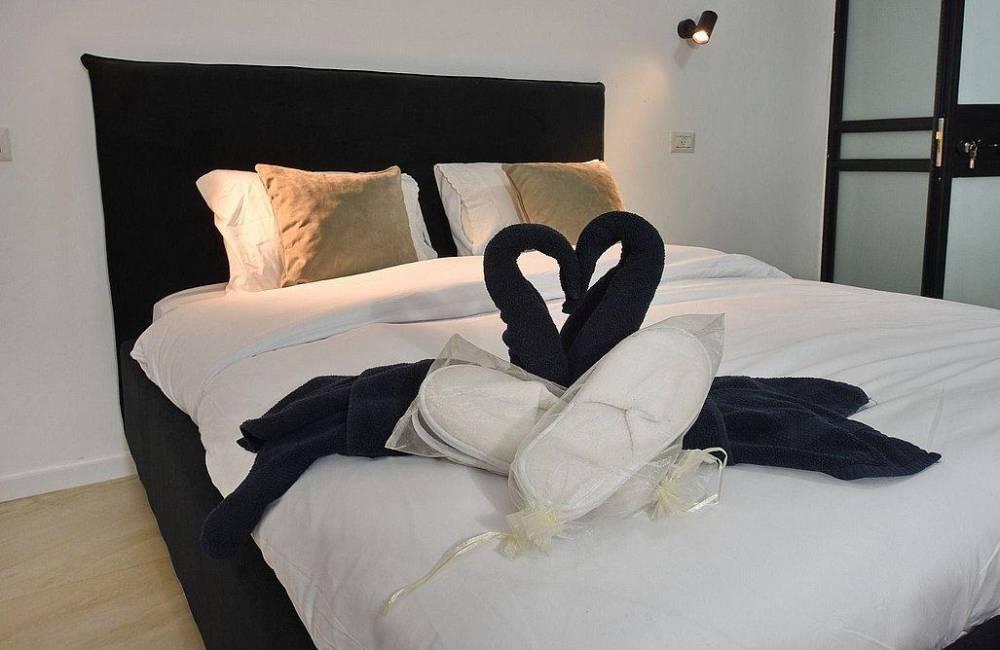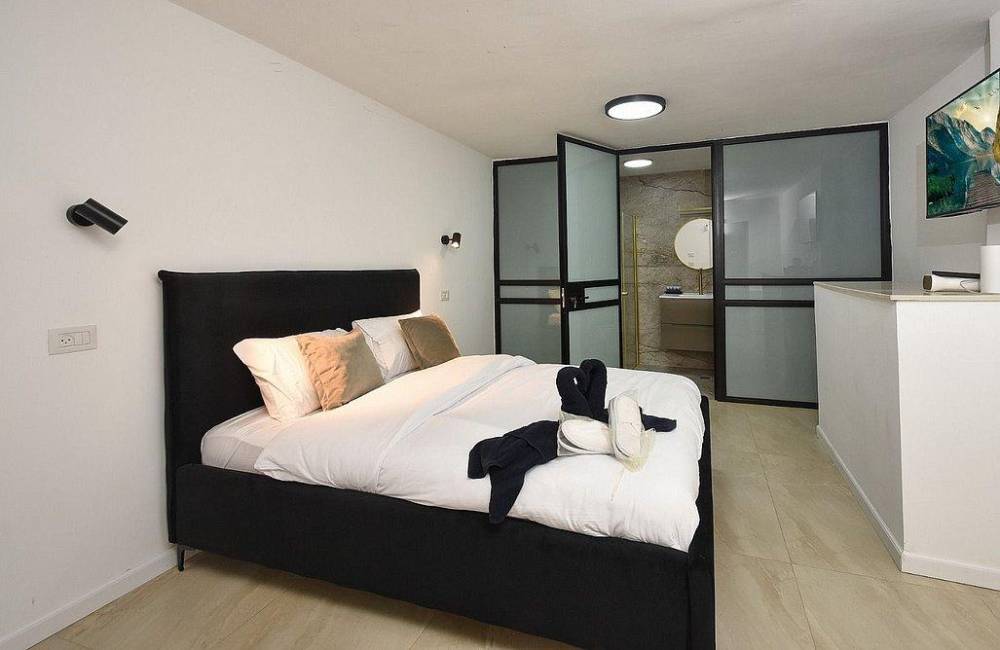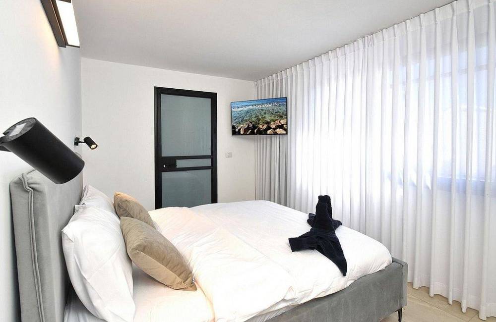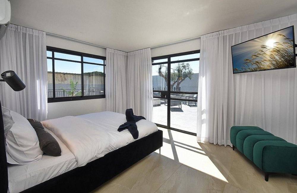 מיטה זוגית מוצעת, מיזוג אוויר, טלוויזיות חכמות כולל נטפליקס, שידות.