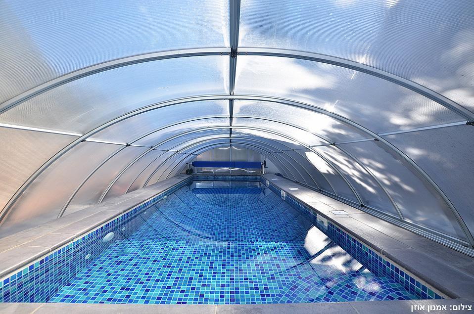 בריכת שחייה ענקית במתחם המשותף מגודרת, בטיחותית, מחוממת ומקורה
