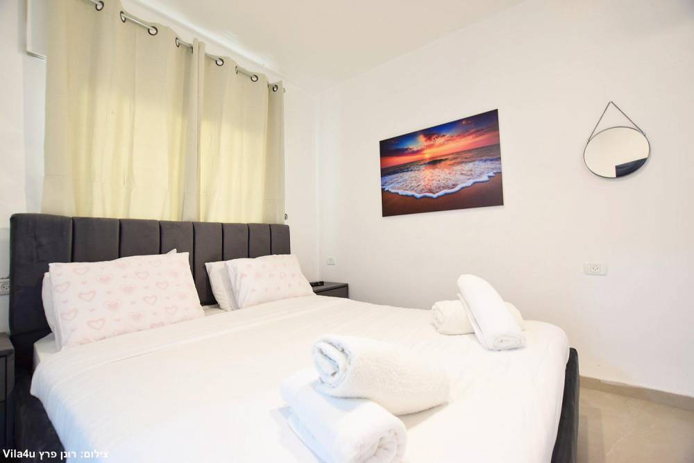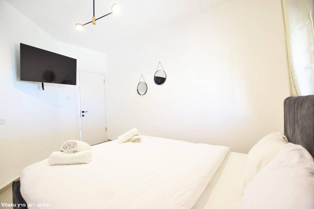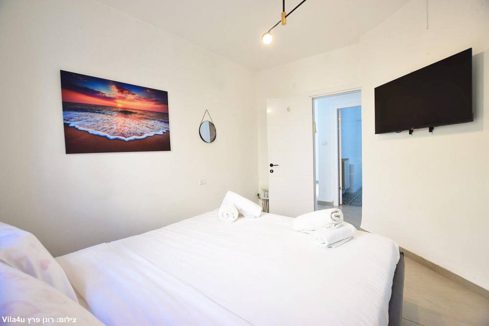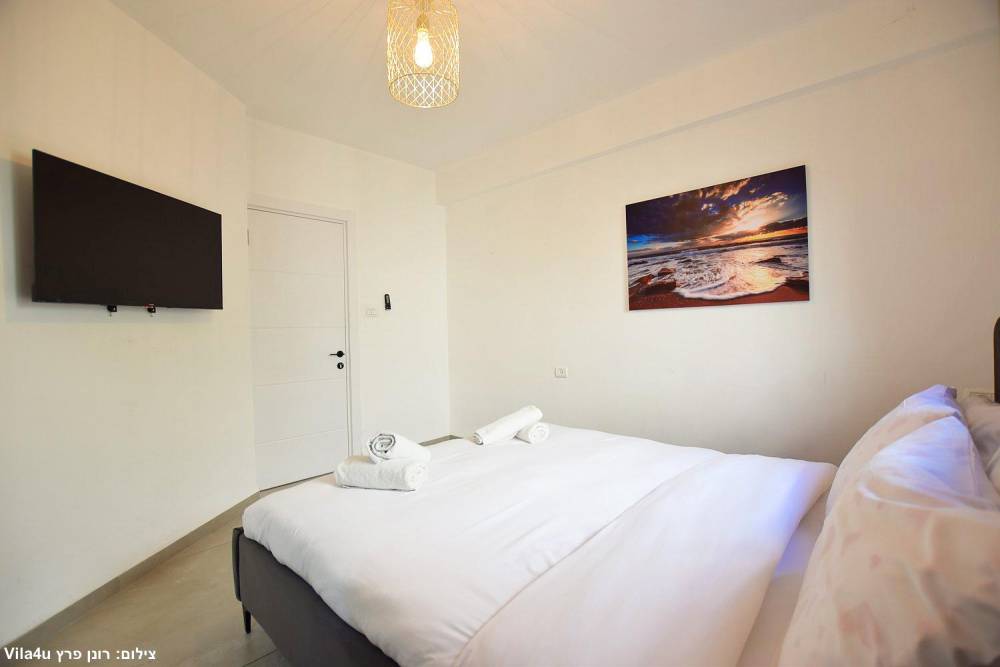 מיטה זוגית מוצעת, שידות, מיזוג אוויר וטלוויזיה