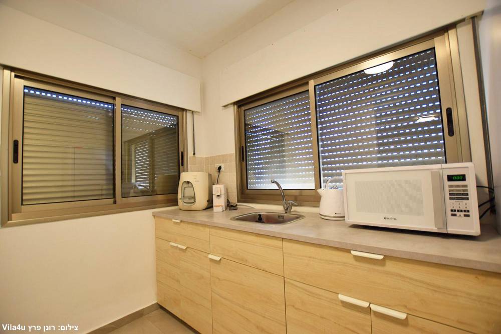 מטבח מאובזר הכולל: מכונת קפה, תמי ,4 קומקום חשמלי, מיקרוגל ומקרר