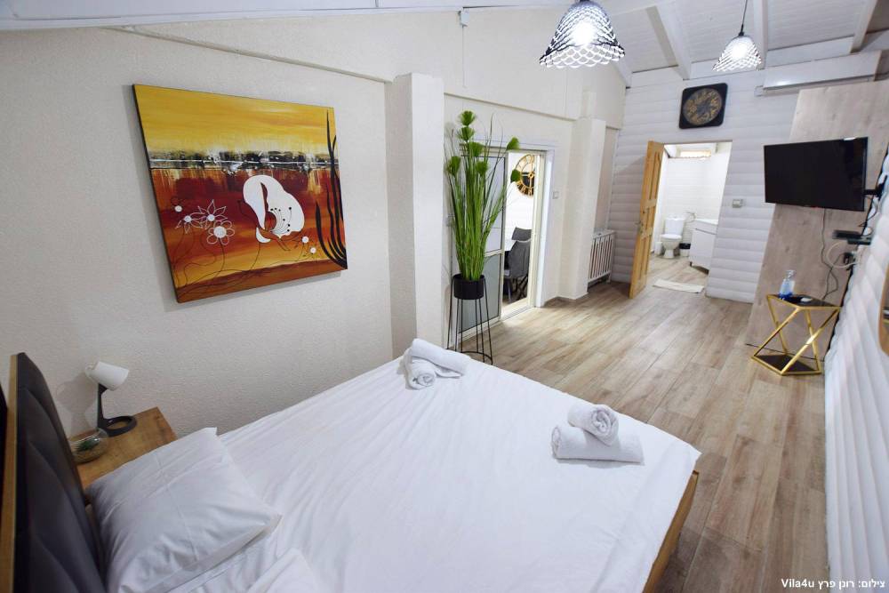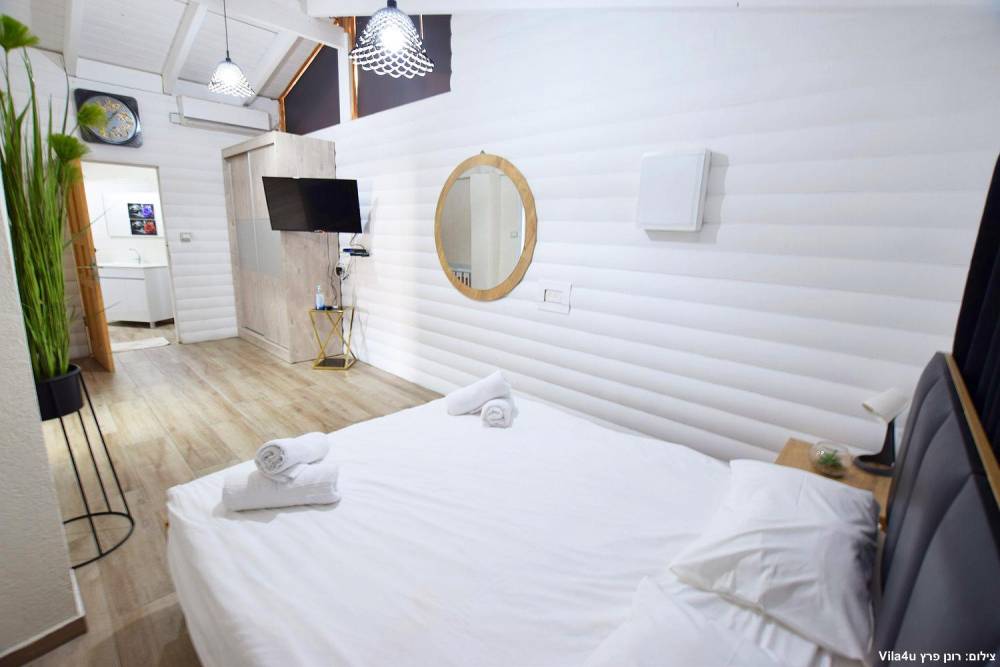 מיטה זוגית, טלוויזיה, חדר רחצה, מיזוג אוויר