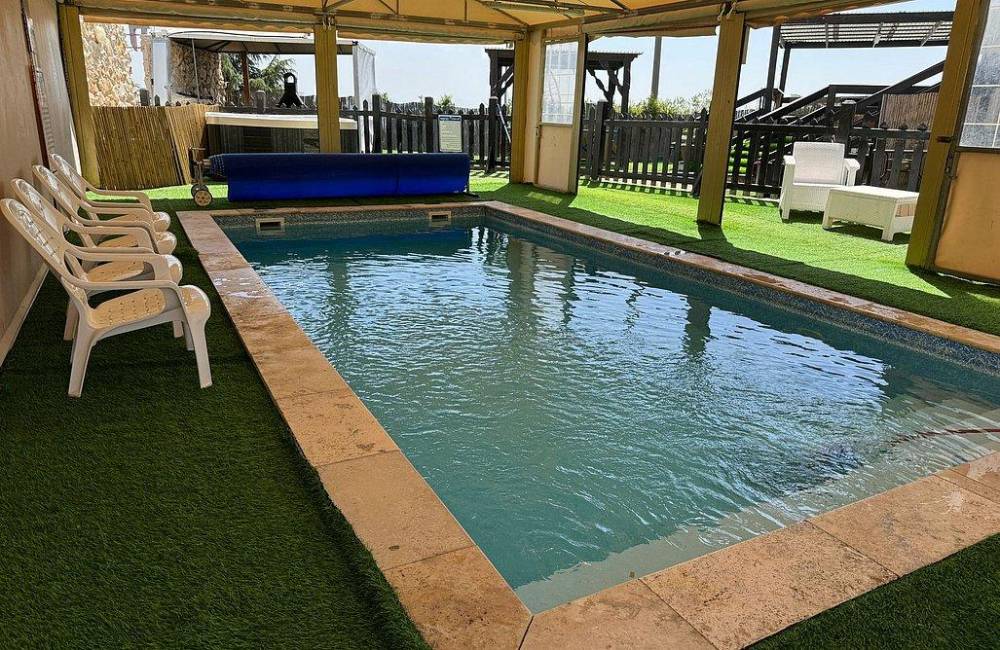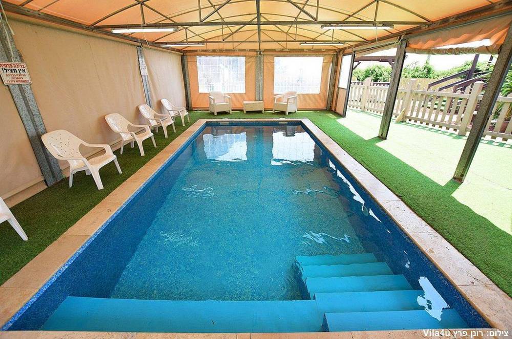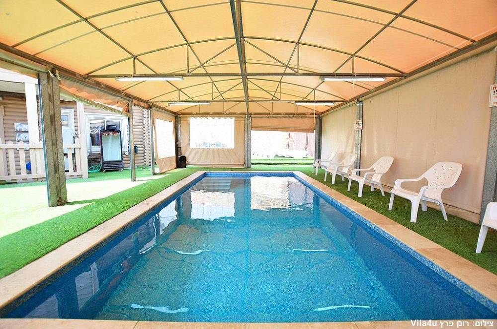 בריכת שחייה מחוממת ומקורה בגודל: 8X4 מטר.