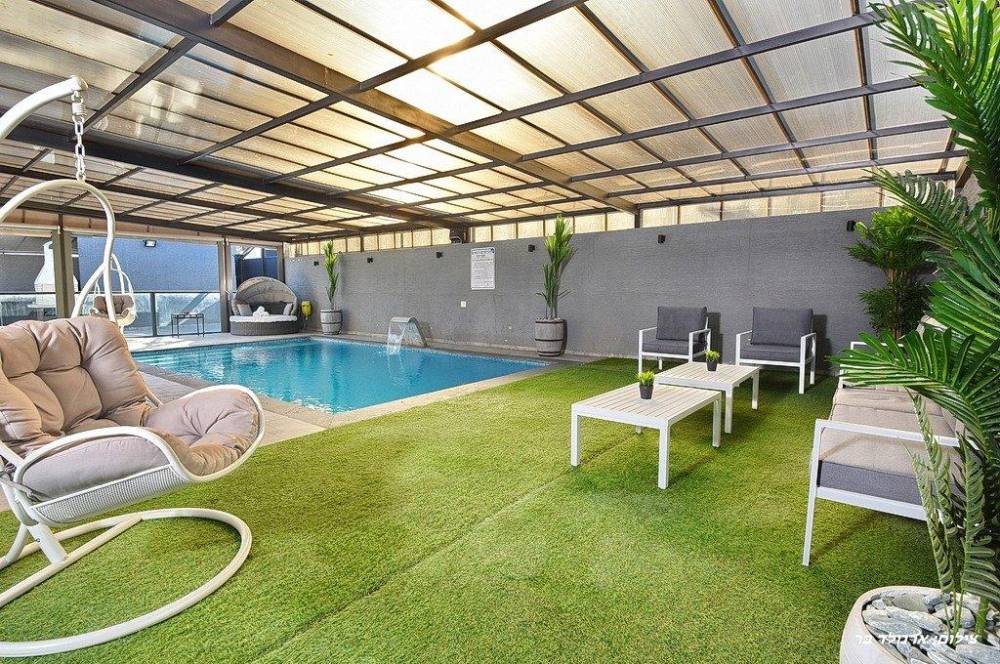 חצר גדולה עם מדשאות - מקורה (ניתן לפתוח את הקירוי).