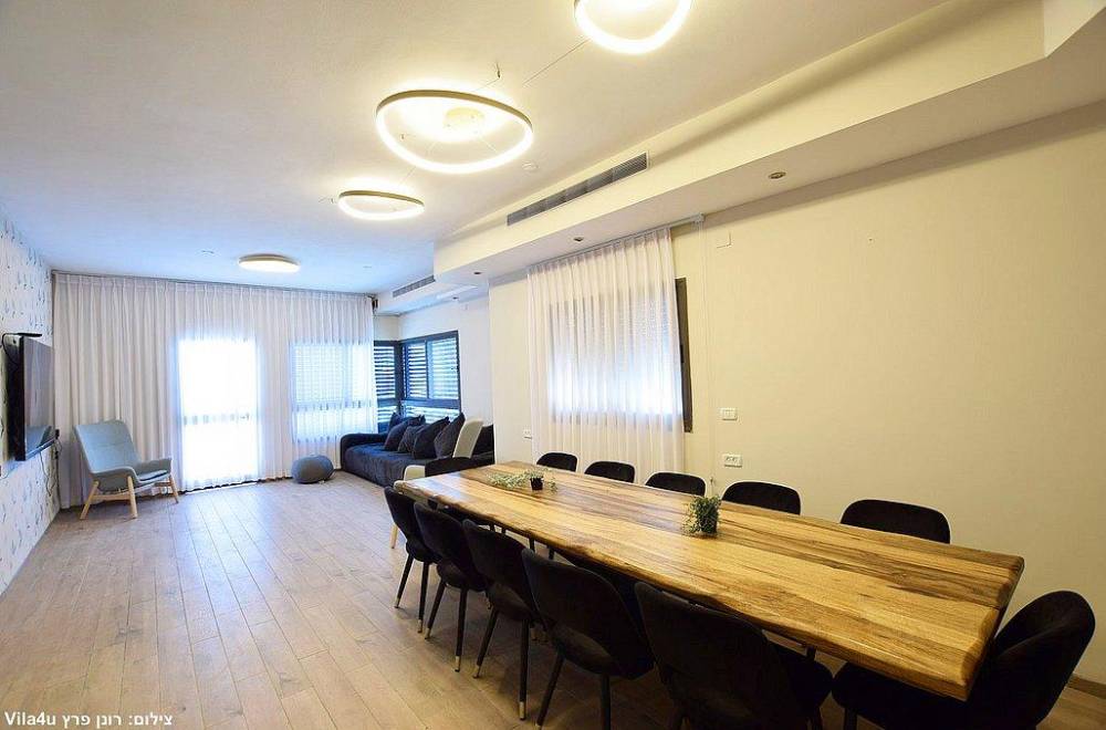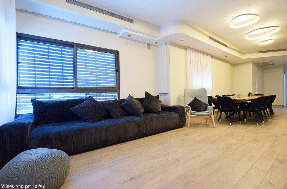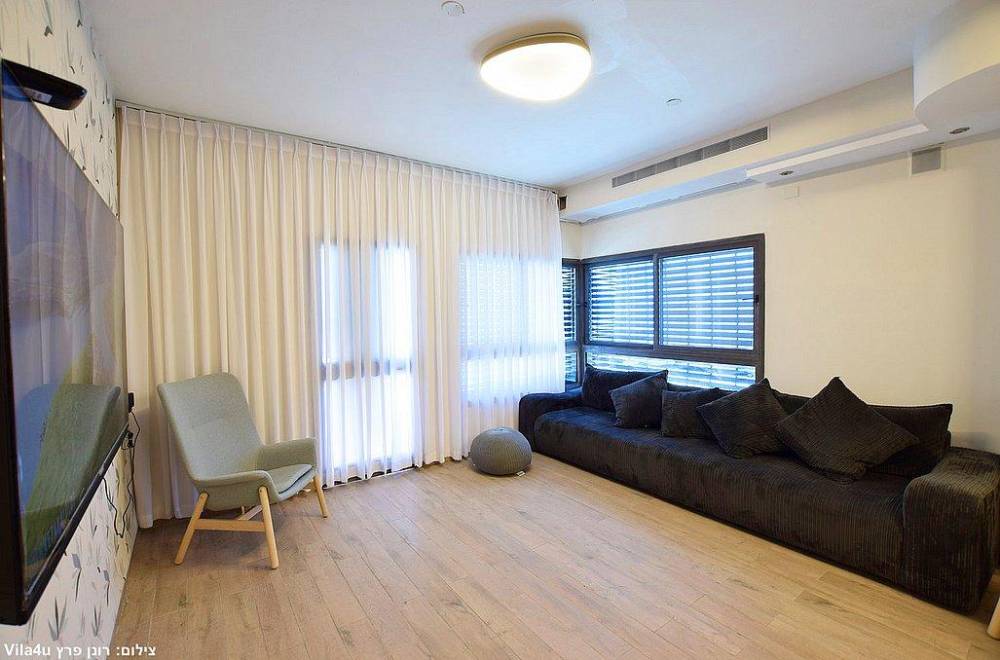 סלון מרווח עם מערכת ישיבה, טלוויזיה עם חיבור לערוצי HOT