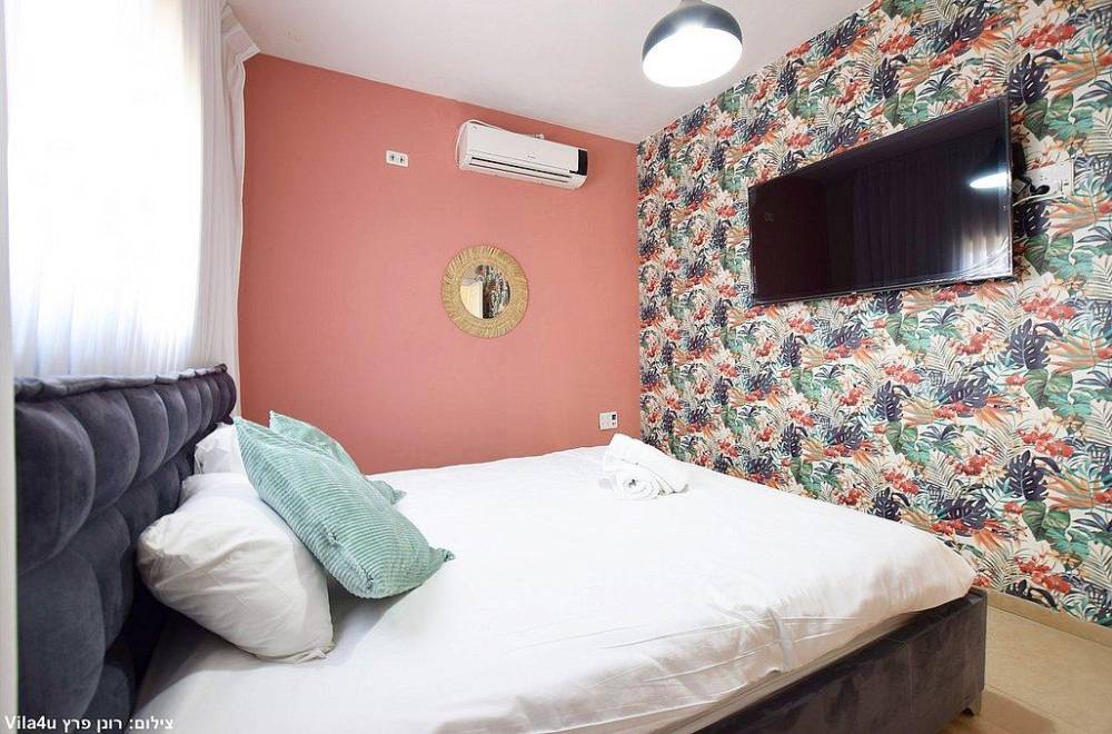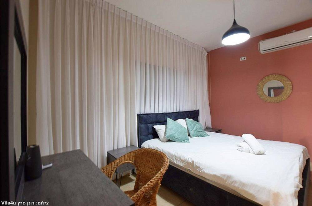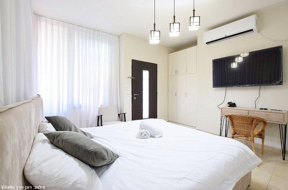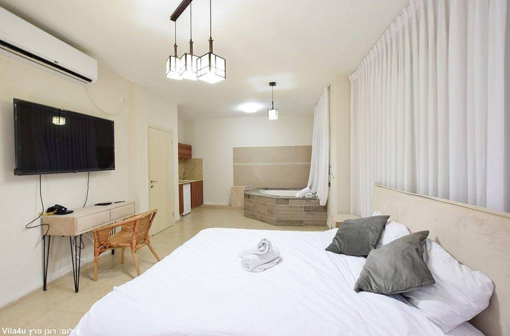 מיטה זוגית, מיזוג אוויר, טלוויזיה עם חיבור לערוצי HOT וארון אחסון. לאחד מהחדרים קיים חדר רחצה פרטי.