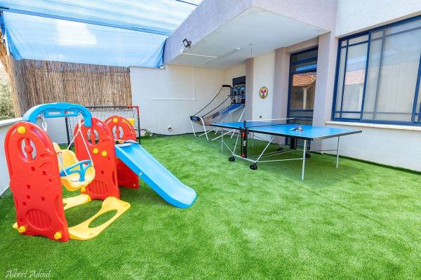 מתקני משחקים לילדים:  שולחן פינג פונג, כדורסל, שער כדורגל, כדורסל מים