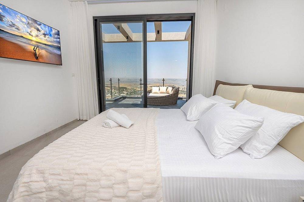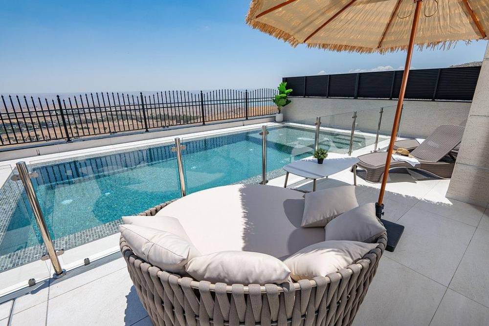 הוילה בנויה על פני 3 קומות ומציעה 8 חדרי שינה מעוצבים, שני מטבחים מאובזרים, סלון רחב ידיים, מתחם משחקים, מרפסות עם נוף מהמם ובריכה פרטית מחוממת מול נוף גלילי פתוח.