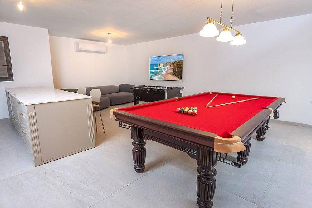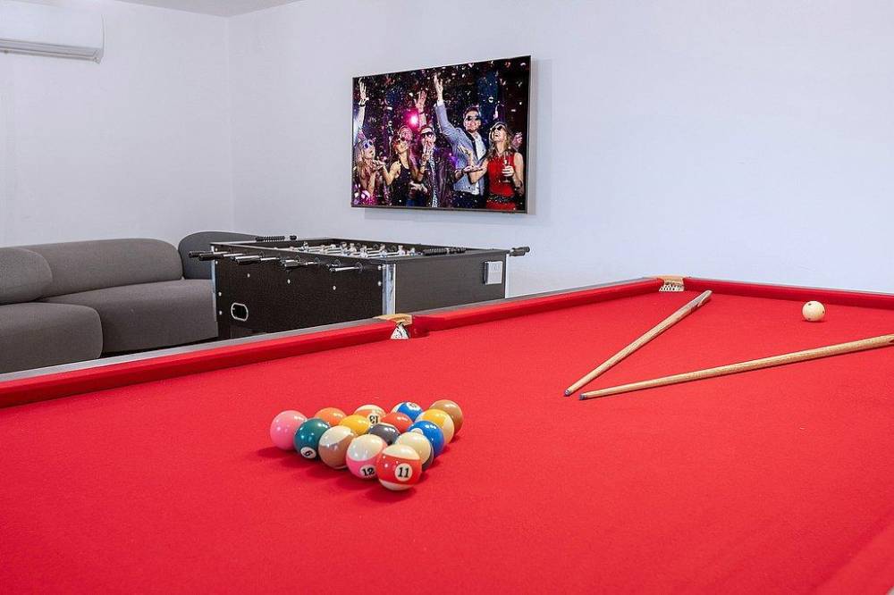 3 חדרים, טלוויזיה, מזגן, ספות נפתחות, שולחן סנוקר, שולחן כדורגל, מטבח נוסף, שירותים ומקלחת נוספים.