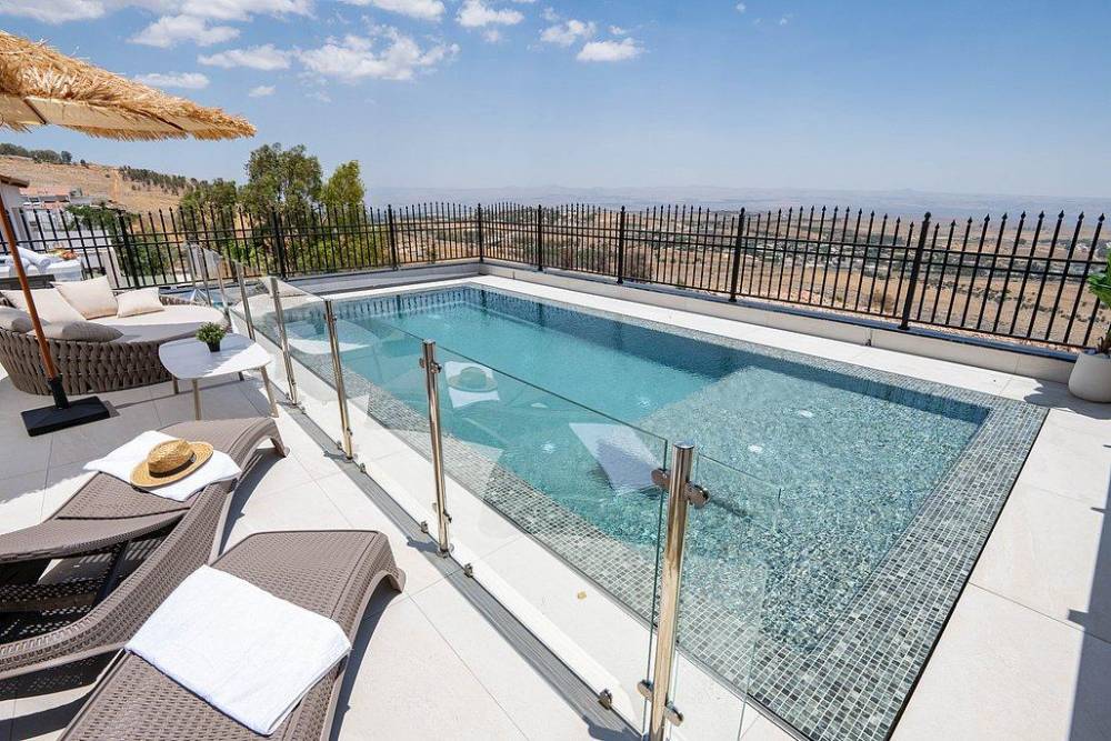 בריכת שחייה פרטית מחוממת (9x4 מ') עם נוף פתוח