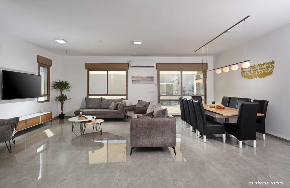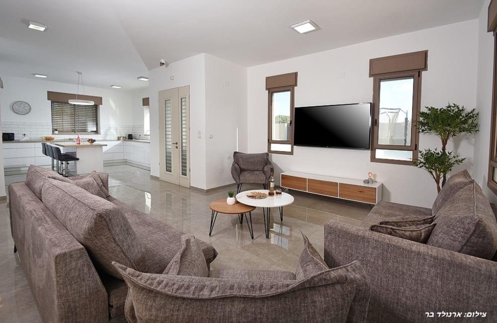 סלון גדול עם מסך 60 אינץ'