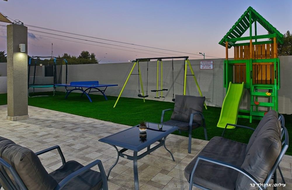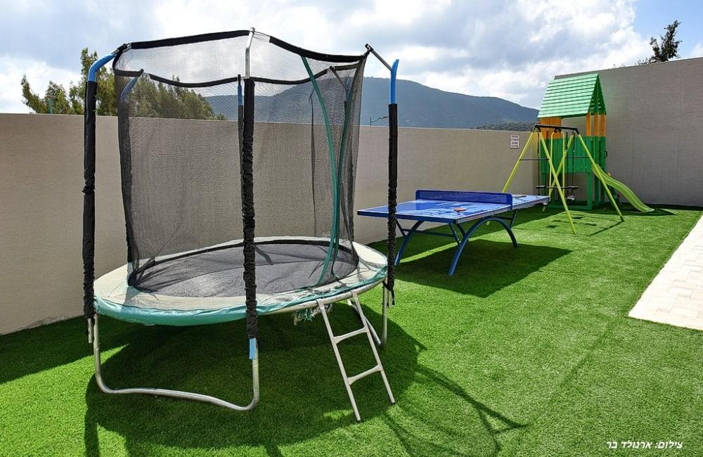 - משחקים לילדים: בית עץ, נדנדות, טרמפולינה, פינג פונג