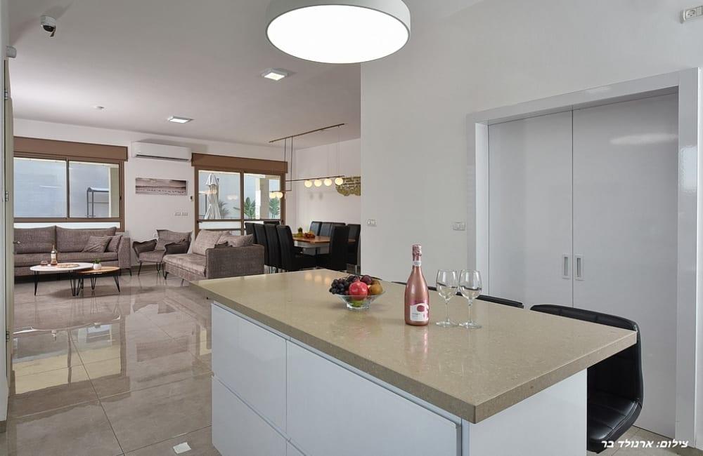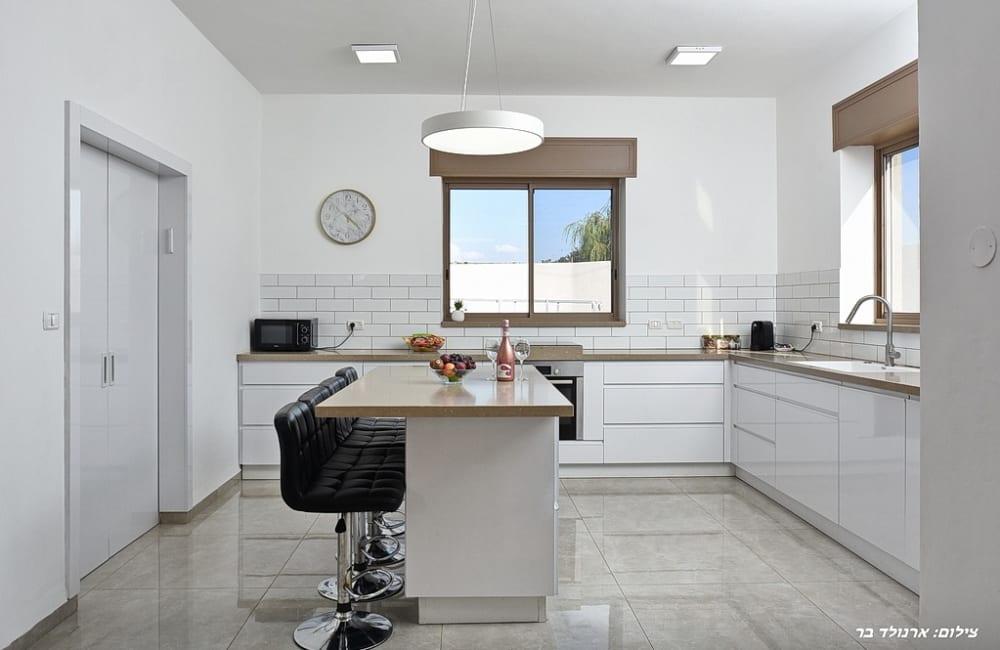 - מטבח מאובזר: מקרר, מקפיא, תנור אפייה, מכונת אספרסו, כיריים חשמליות, מיקרוגל, מדיח כלים, כלי אוכל והגשה